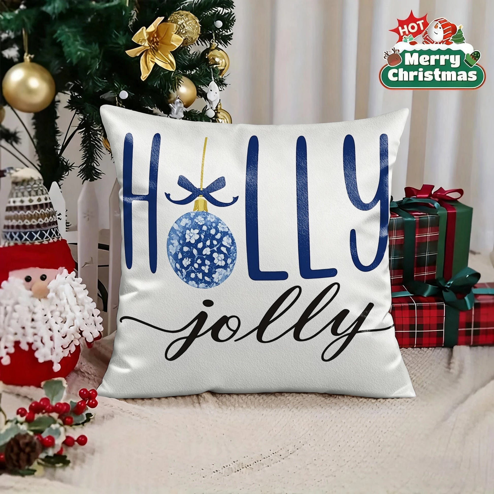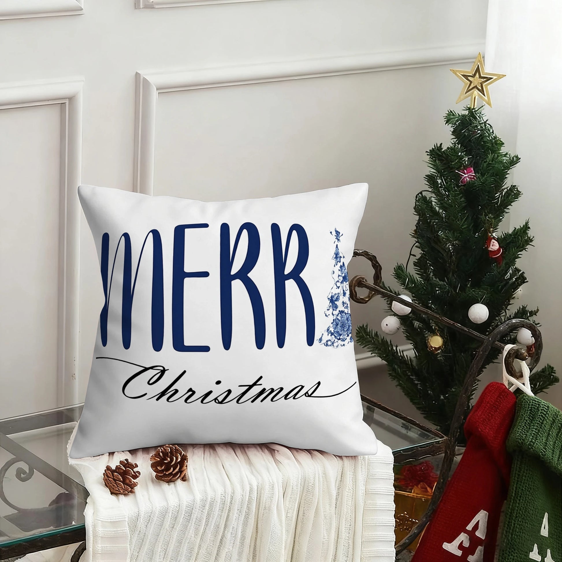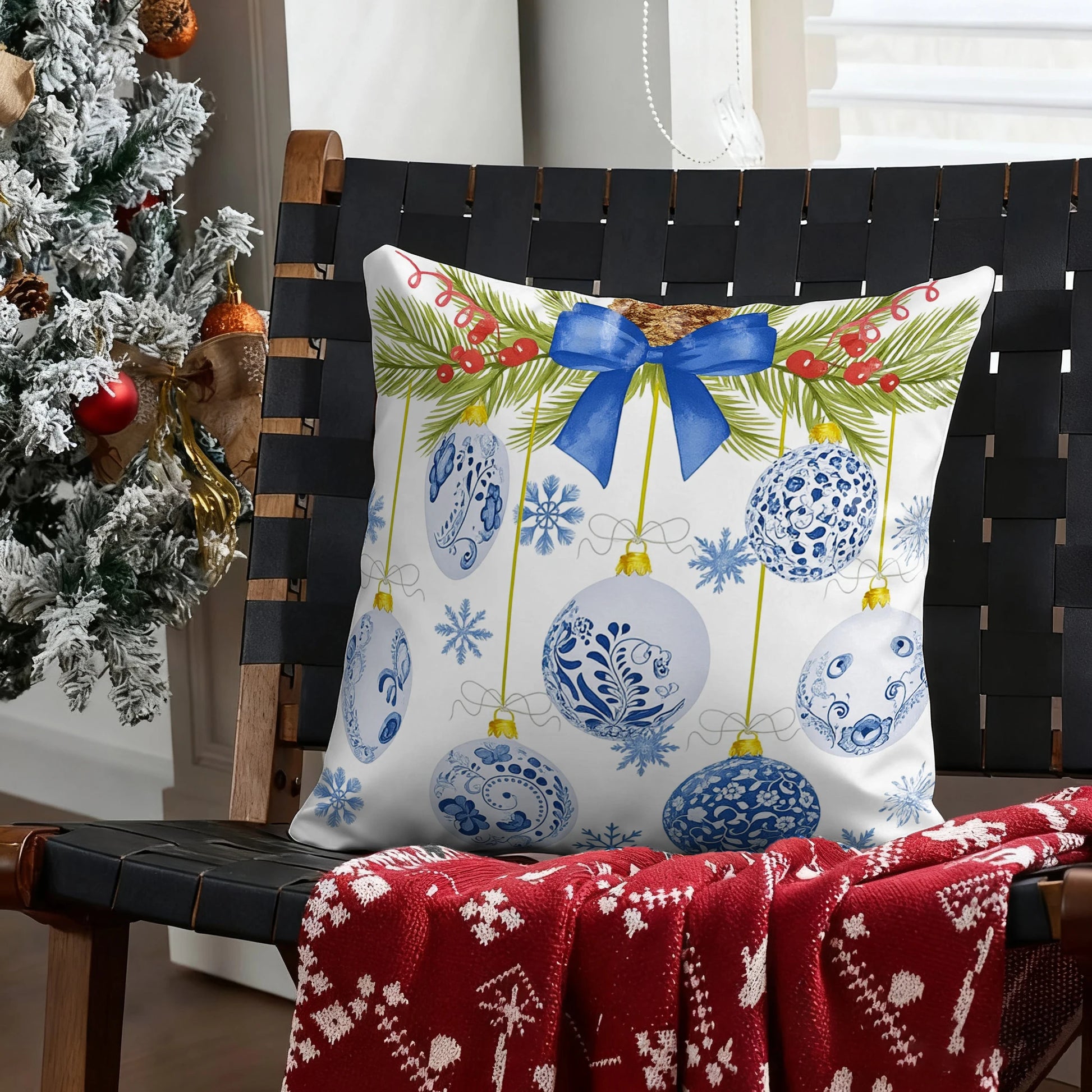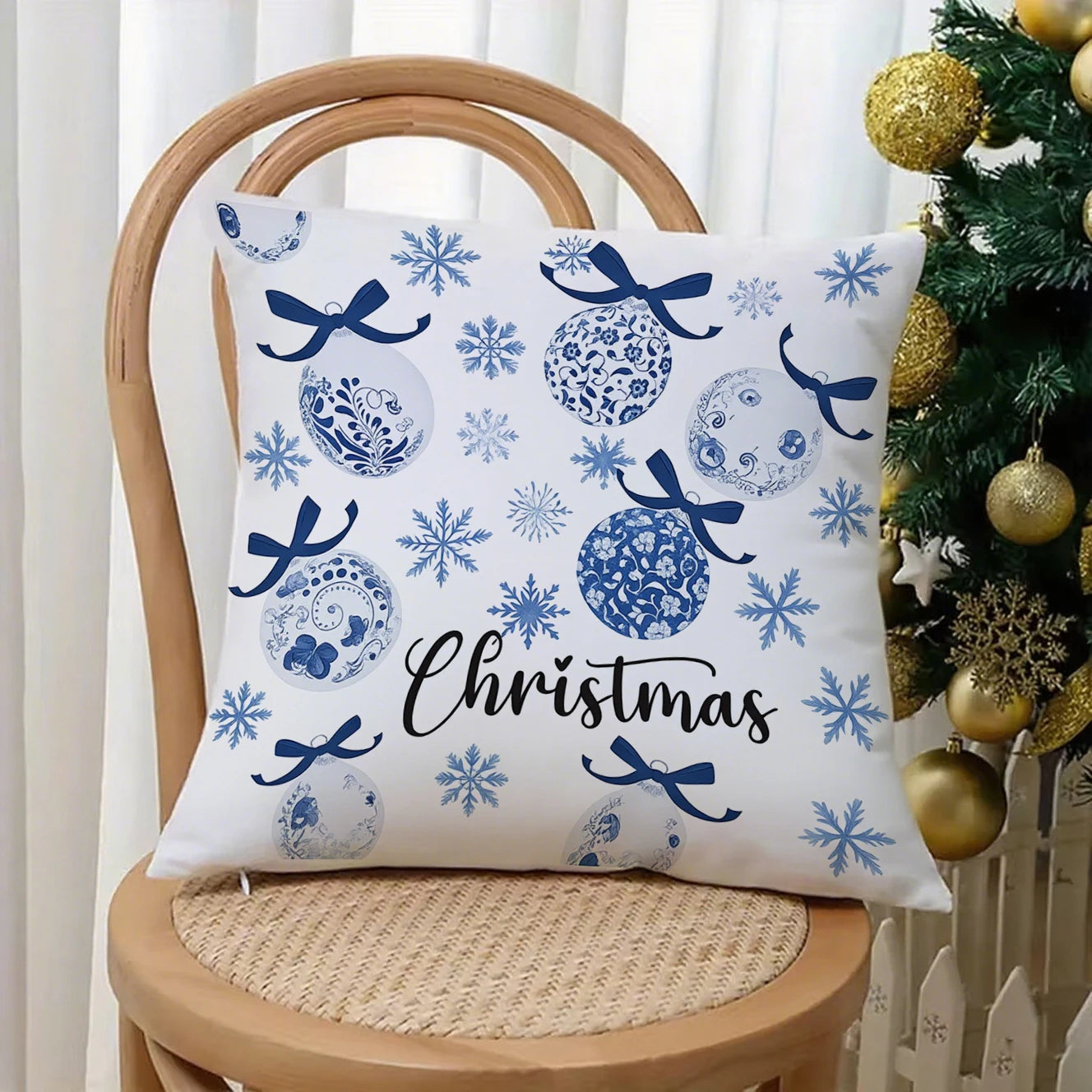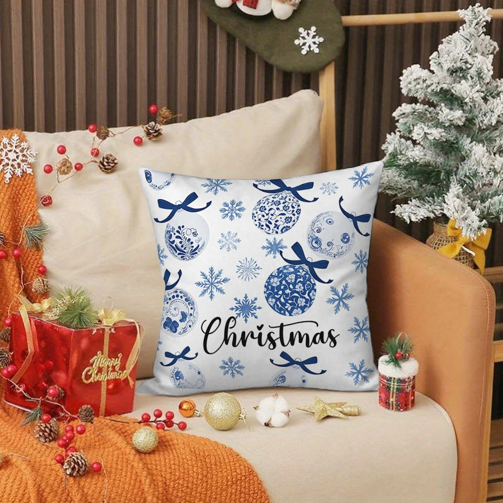 Christmas Blue Patterned PillowcaseSuitable for sofa car bedroom decorative cushion cover pillow cover