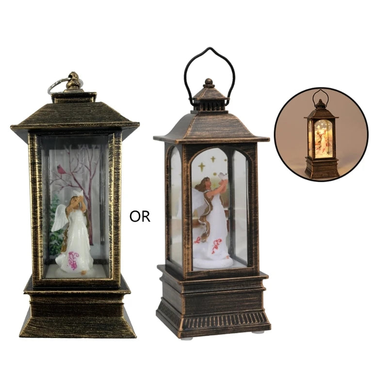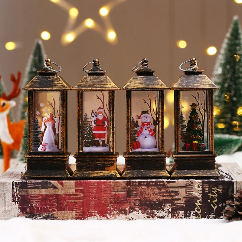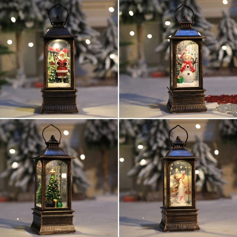 Christmas Glittering Lantern Santa-Claus/Xmas Tree/Snowman/Angel Lighted Lantern Home Table Decoration Gift for Kids B03E