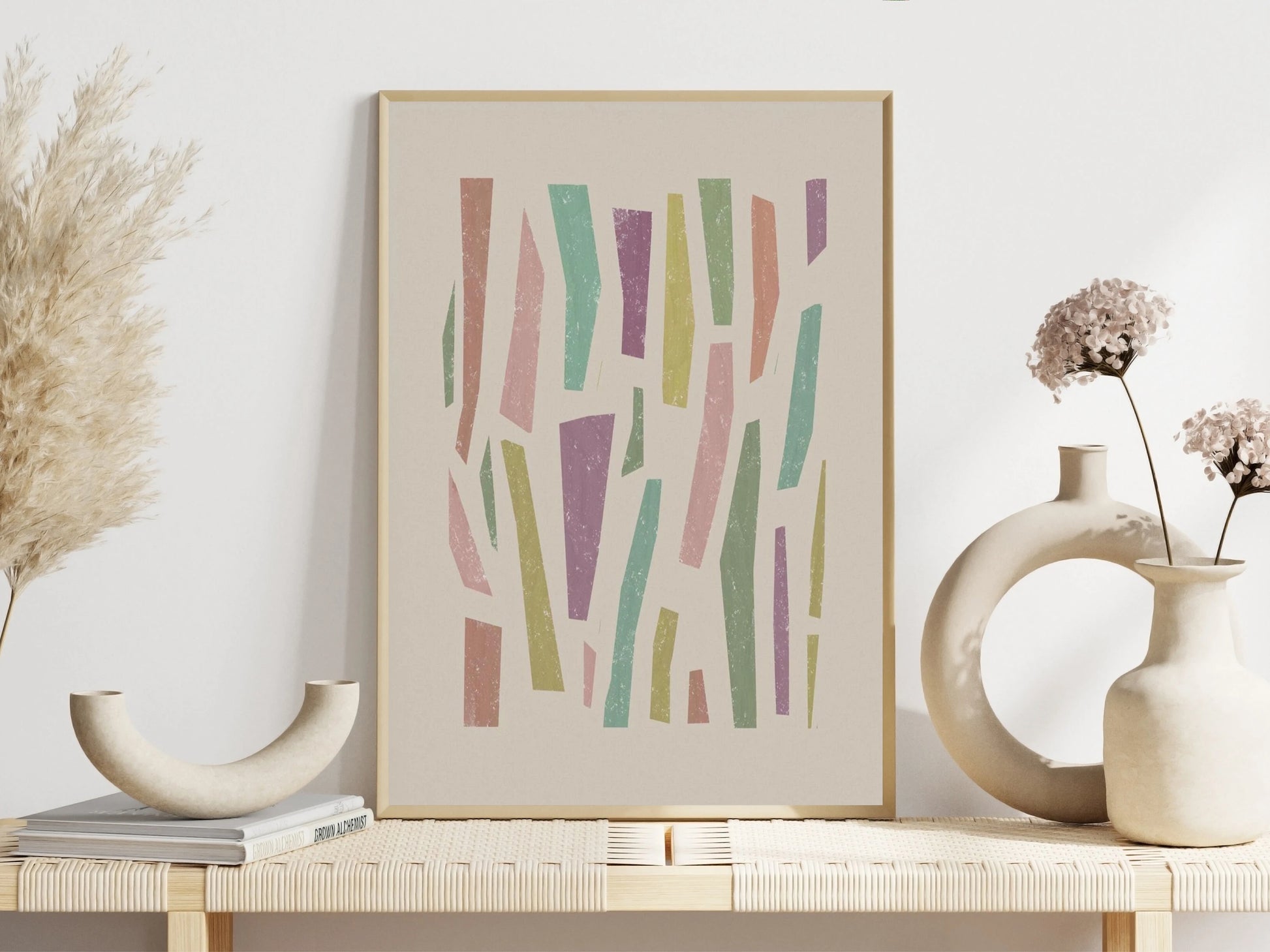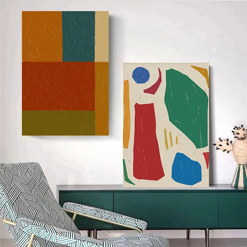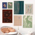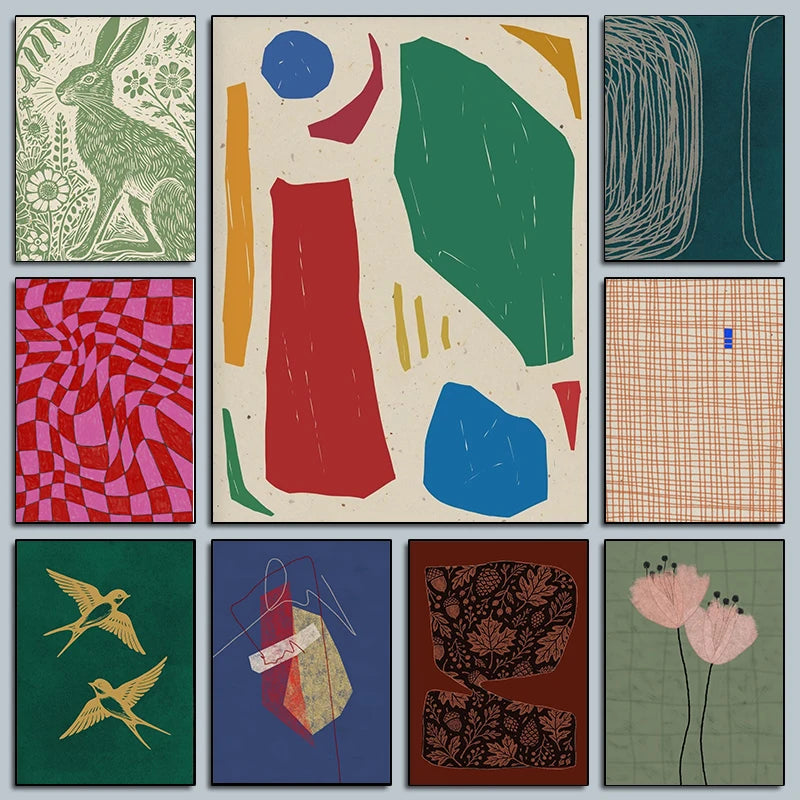 Colorful Abstract Geometric Line Poster Green Hare Flowers Modern Prints Canvas Painting Wall Art Picture Home Living Room Decor