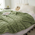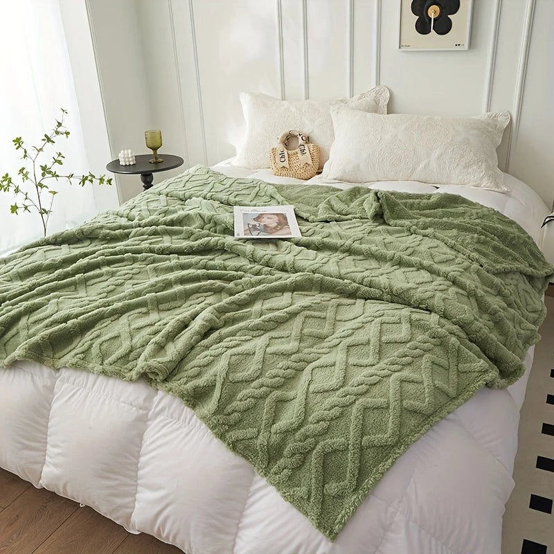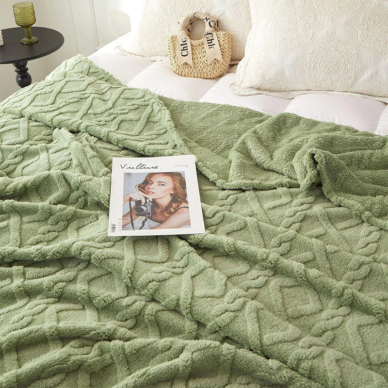 Coral Fleece Jacquard Soft Warm Fluffy and Comfortable Single Blanket Green Warm and Machine Washable Coral Fleece Blanket