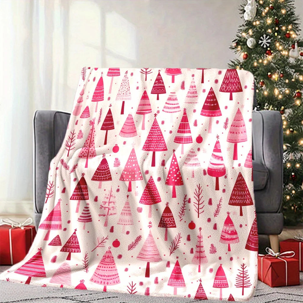 Cozy Pink Christmas Tree Flannel Throw Blanket - Soft, Warm & Versatile for Naps, Camping, Travel & Home Decor - Perfect Holiday