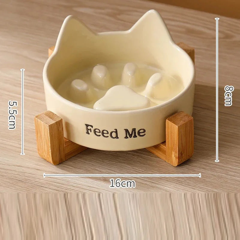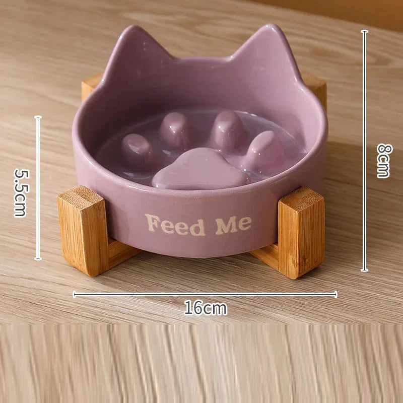 Creative Ceramic Anti-Choking Slow Eating Dog And Cat Bowl with Wooden Frame, Large Bore Dogs Food Bowls, Pet Supplies, 1Pc