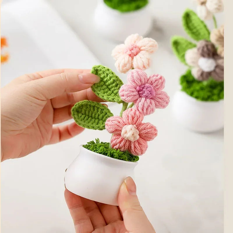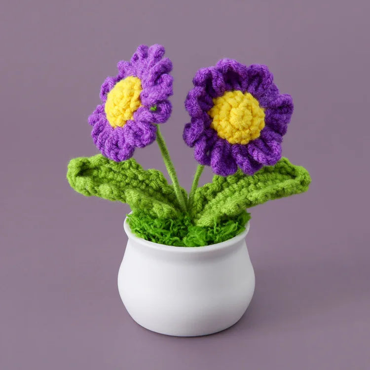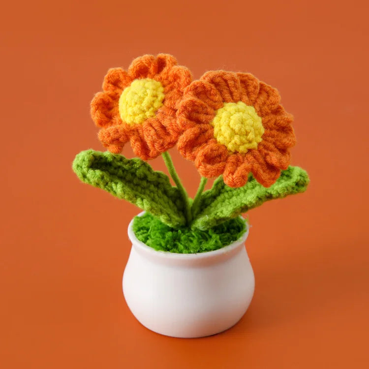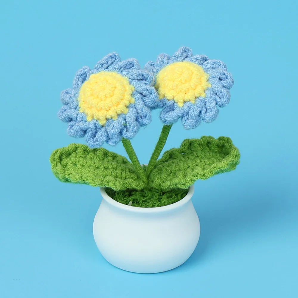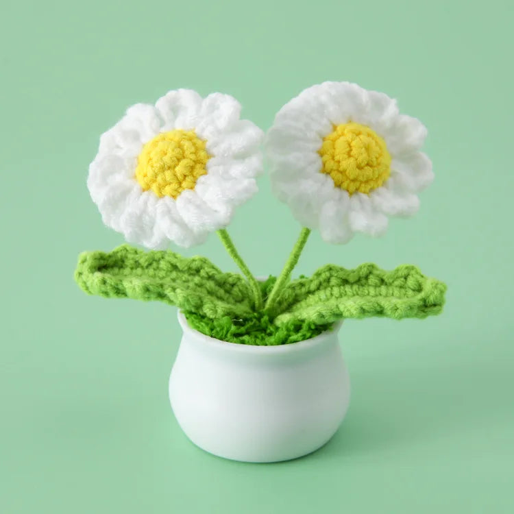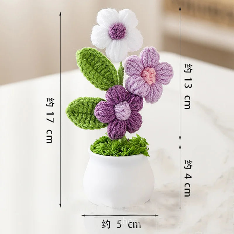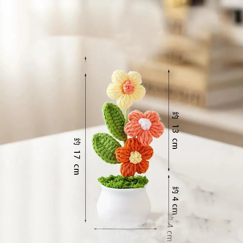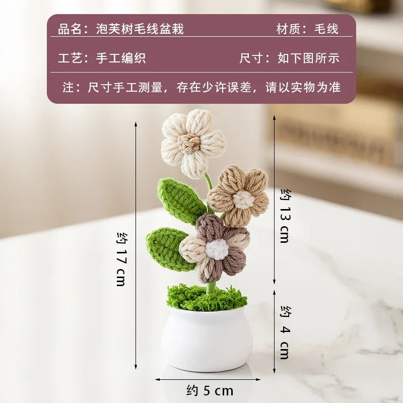 Creative Kintted Flower Potted Mini Artificial Flowers Finished Hand Woven Crochet Plant Cute Car Table Home Decor Gift