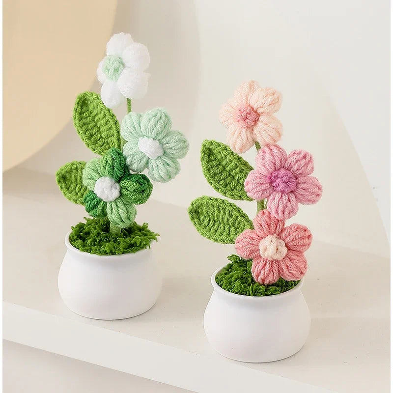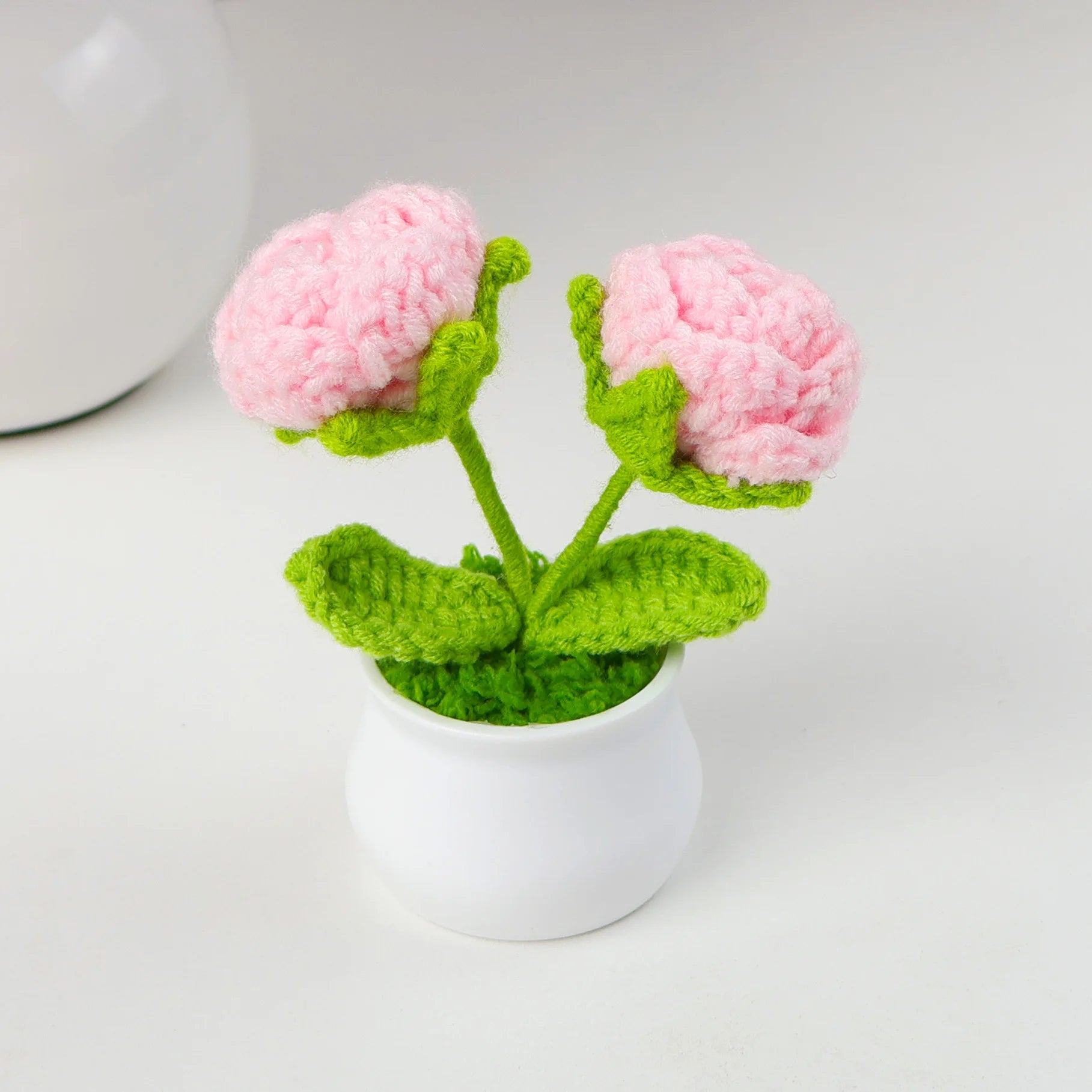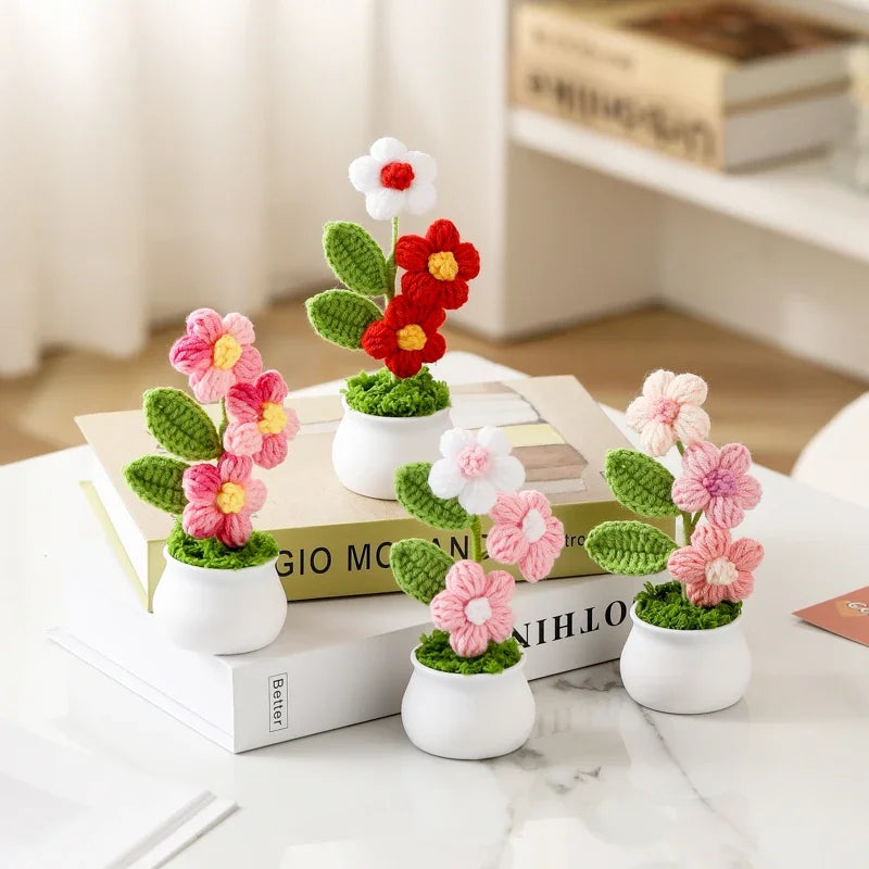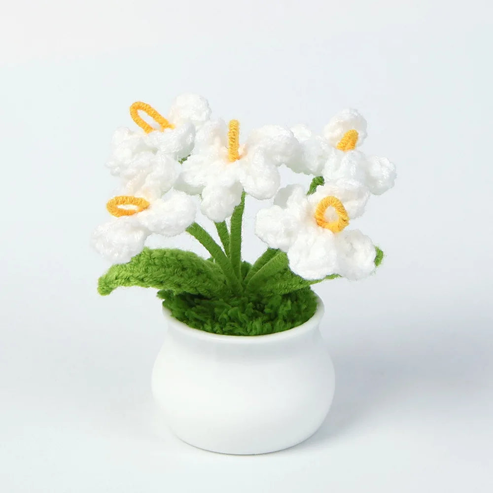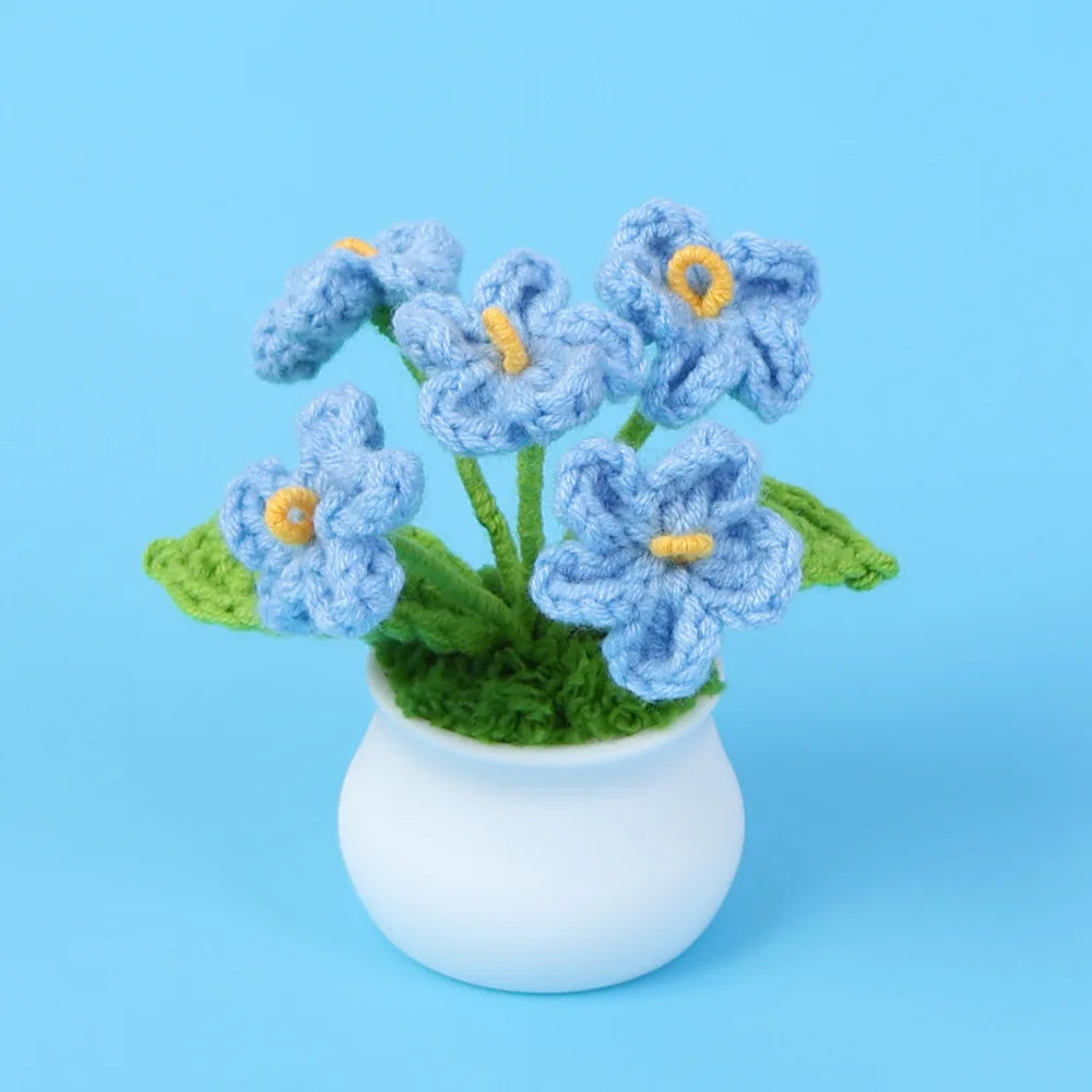 Creative Kintted Flower Potted Mini Artificial Flowers Finished Hand Woven Crochet Plant Cute Car Table Home Decor Gift