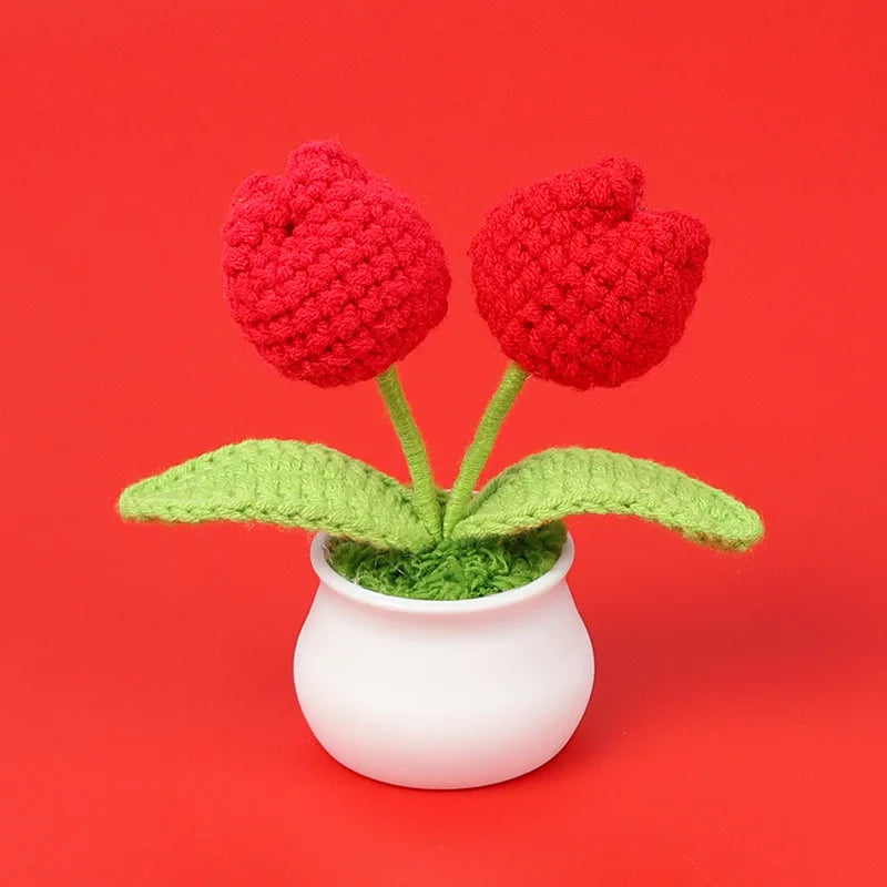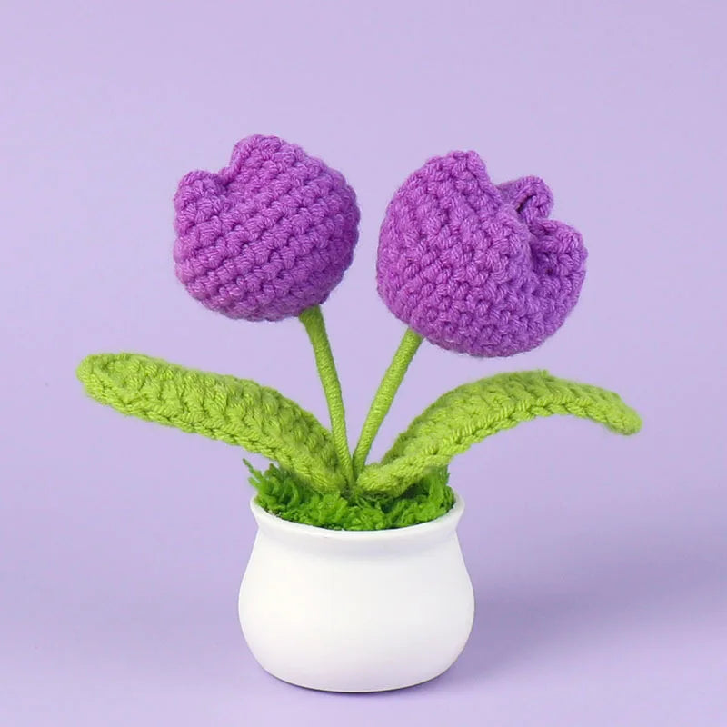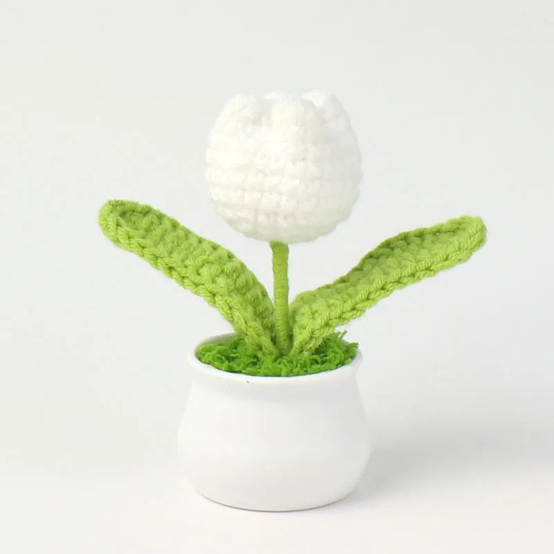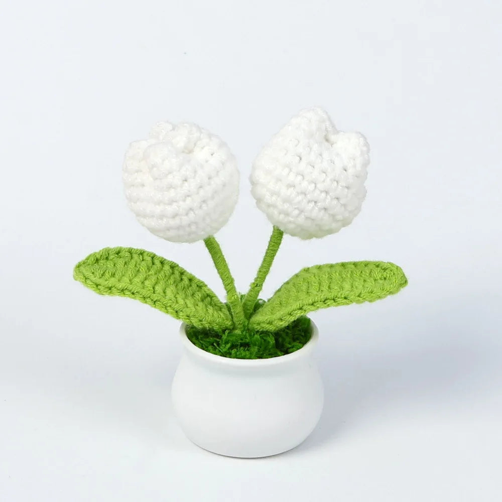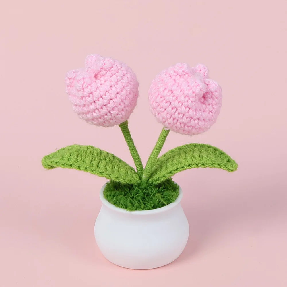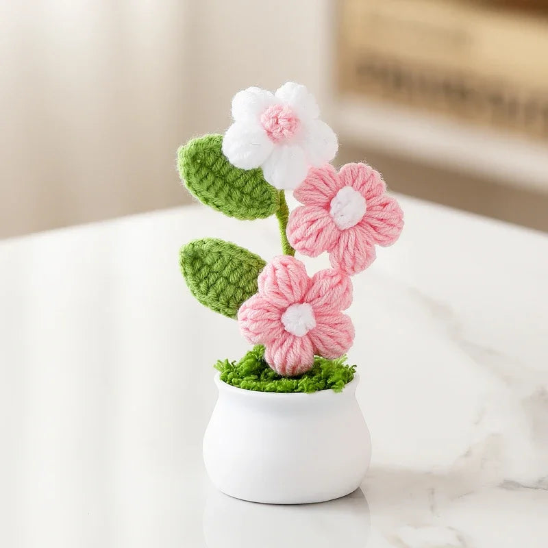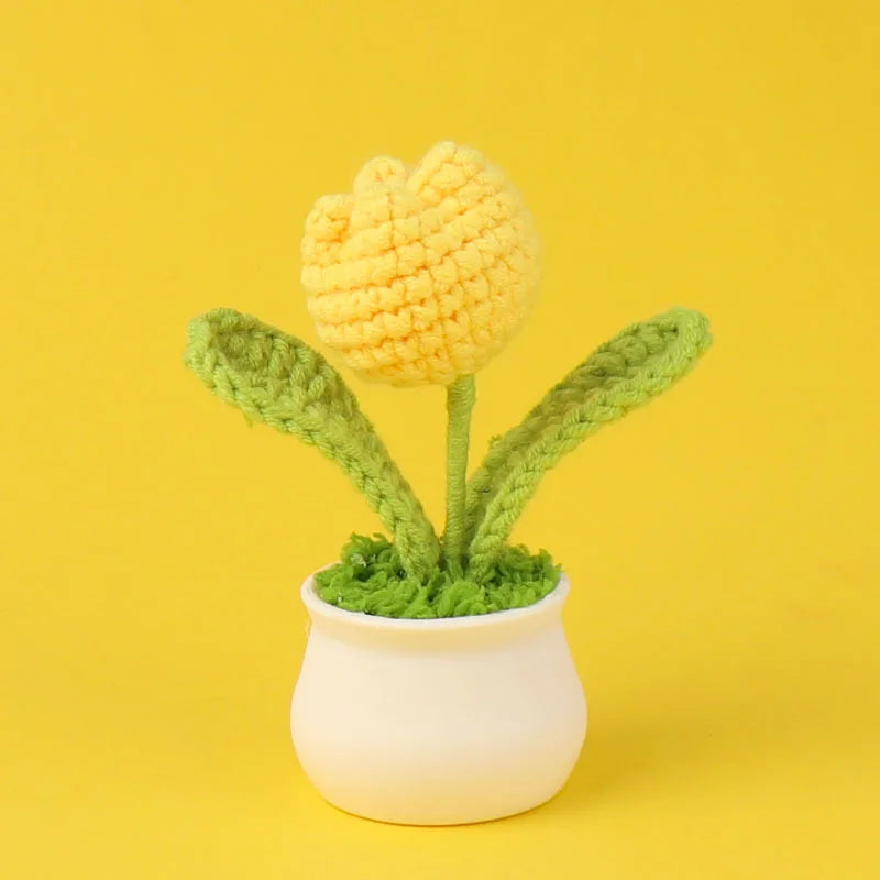 Creative Kintted Flower Potted Mini Artificial Flowers Finished Hand Woven Crochet Plant Cute Car Table Home Decor Gift