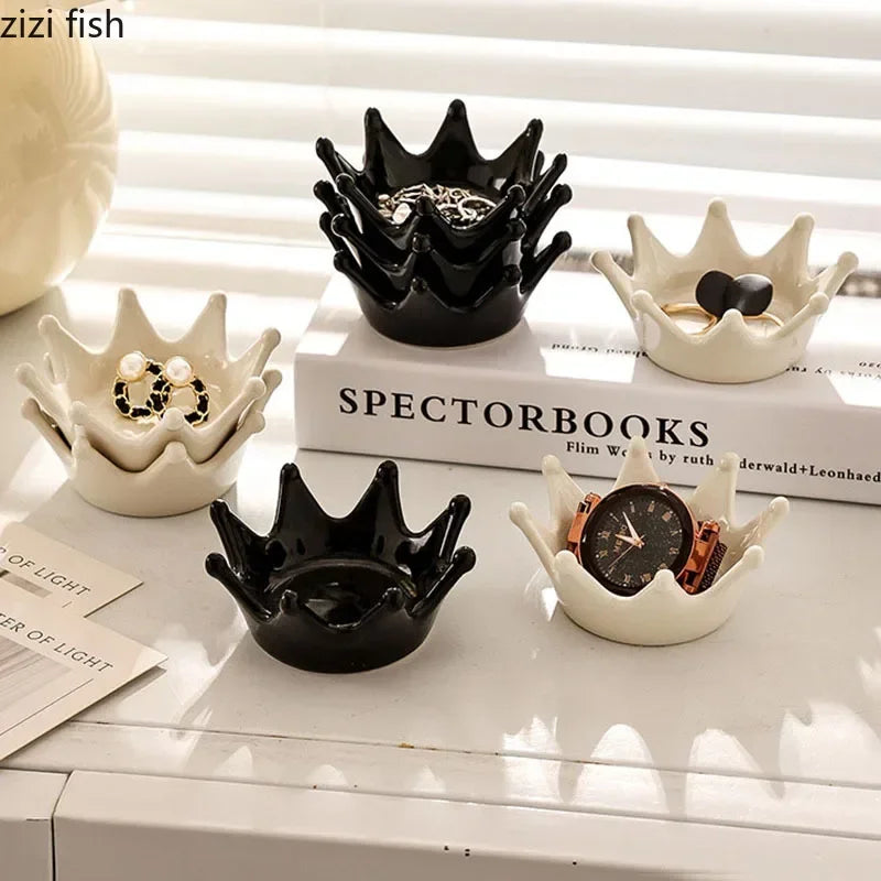 Crown Shaped Ceramic Decorative Tray Desktop Creative Jewelry Storage Tray Household Irregular Ring Pendant Jewelry Storage Tray