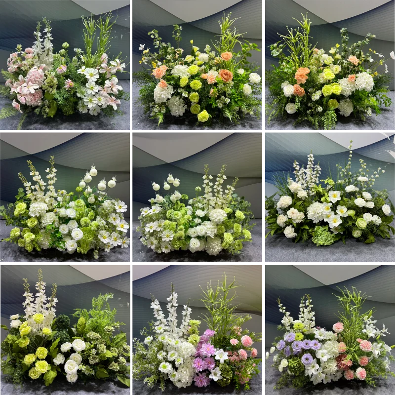 Customized Artificial Flower Row Outdoor Wedding Party Decoration Flower Arrangement Road Guide Floor Flower Arrangement Props
