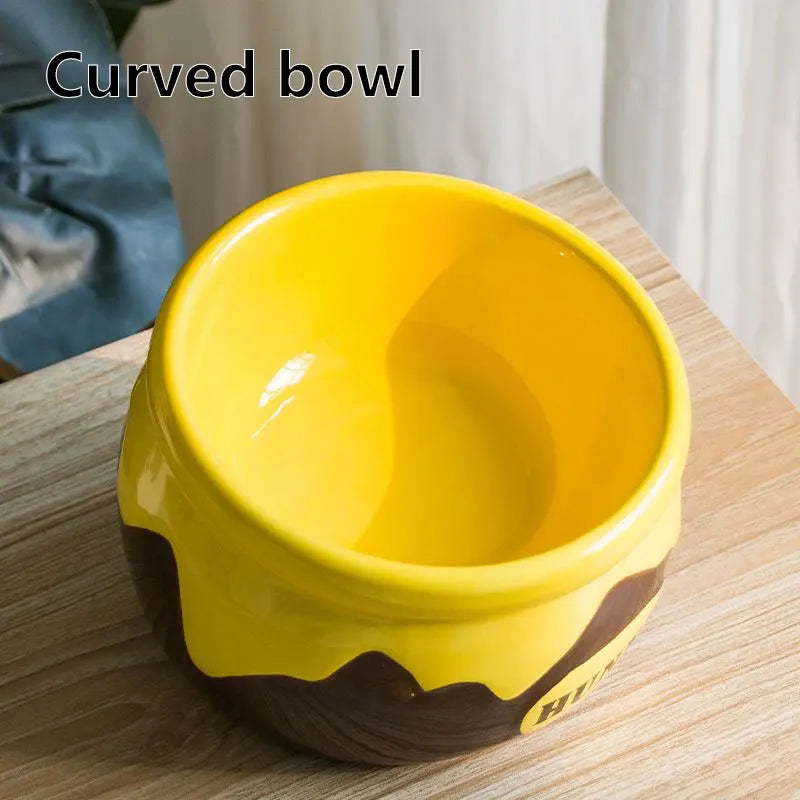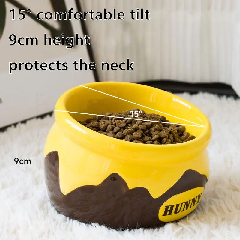 Cute Ceramic Honey Jar Cat Bowl Pet Food Water Bowl Tilt Design Protect Neck Small Dog Drinking and Eating Feeder Puppy Cat Bowl