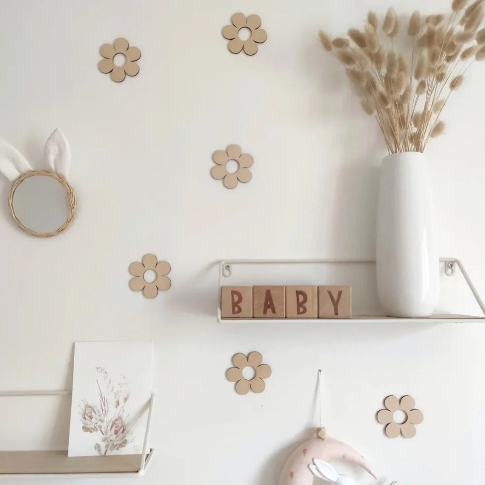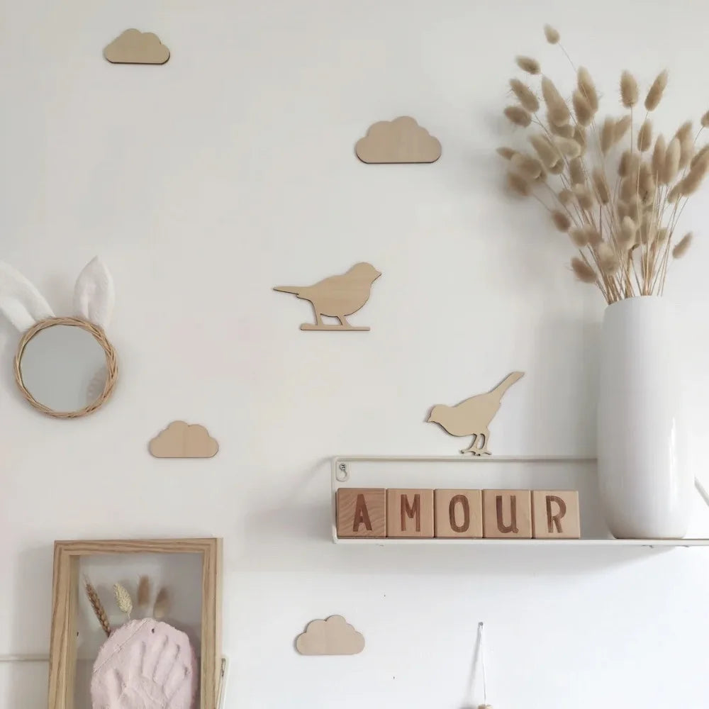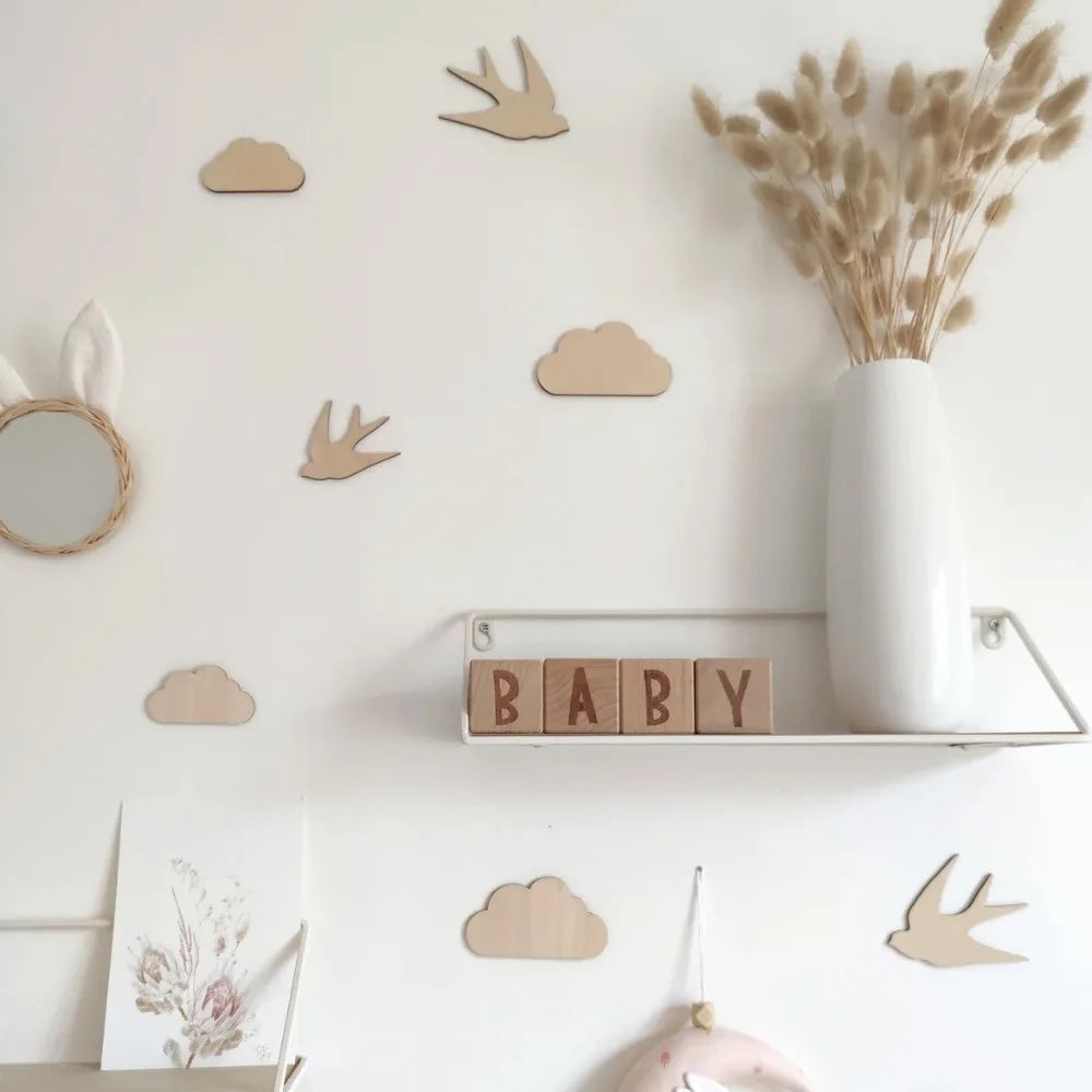 Cute DIY Wall Stickers Flowers Self-adhesive Wooden Stickers Wall Ornaments Clouds 3D Wall Stickers Kids Room Decoration