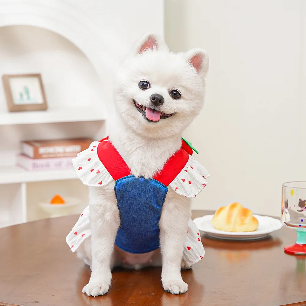 Cute Heart Print Dog Harness Dress with Leash Denim Puppy Princess Skirt Cute Cat Harness Pet Outdoor Walking Rope Dog Clothes