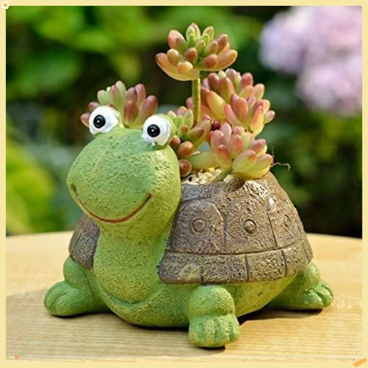 Cute Turtle Planter for Succulents, Small Resin Pot for Home Office Desk Decoration