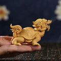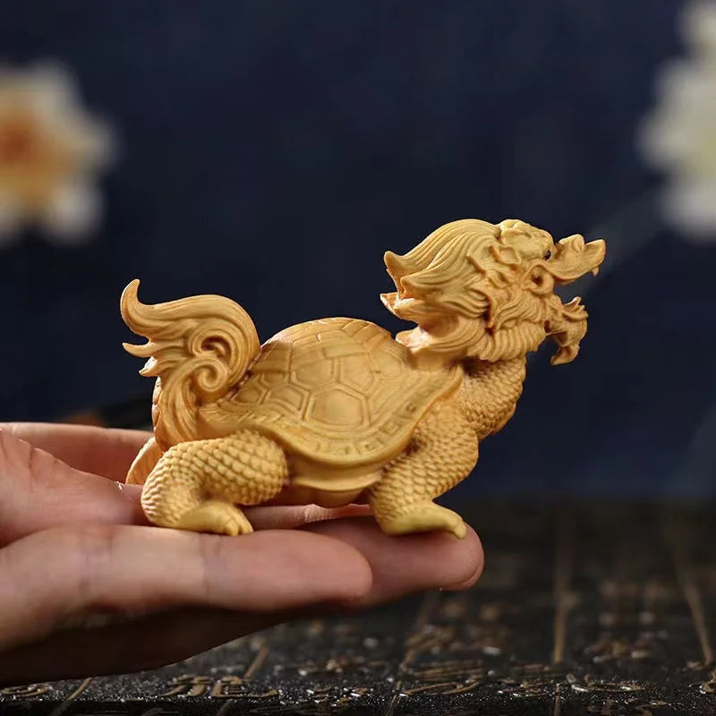 Cypress dragon turtle sculptures and Figurines Chinese mascot Solid wood carving Home Room Office Wealth Luck Feng Shui Decor