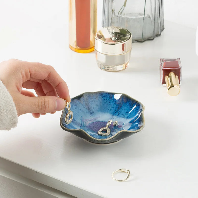 Decorative Lotus Jewelry Tray - Hand-Painted Ceramic Organizer for Bracelets/Rings, Artistic Home Decor and Luxury Giftware
