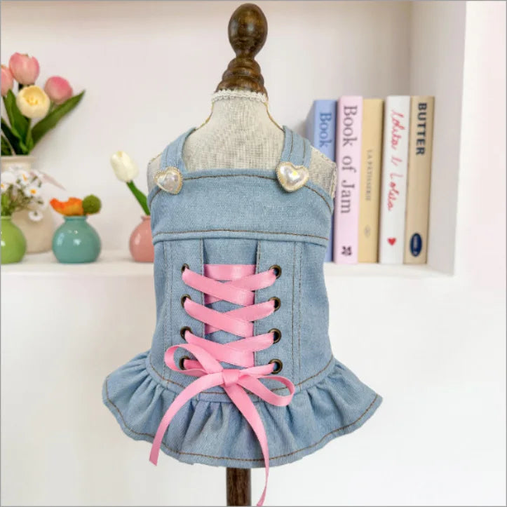 Designer Dog Denim Jacket - Cute Stylish Princess Style with Fun Prints for Small Dogs Pet Jeans Vest