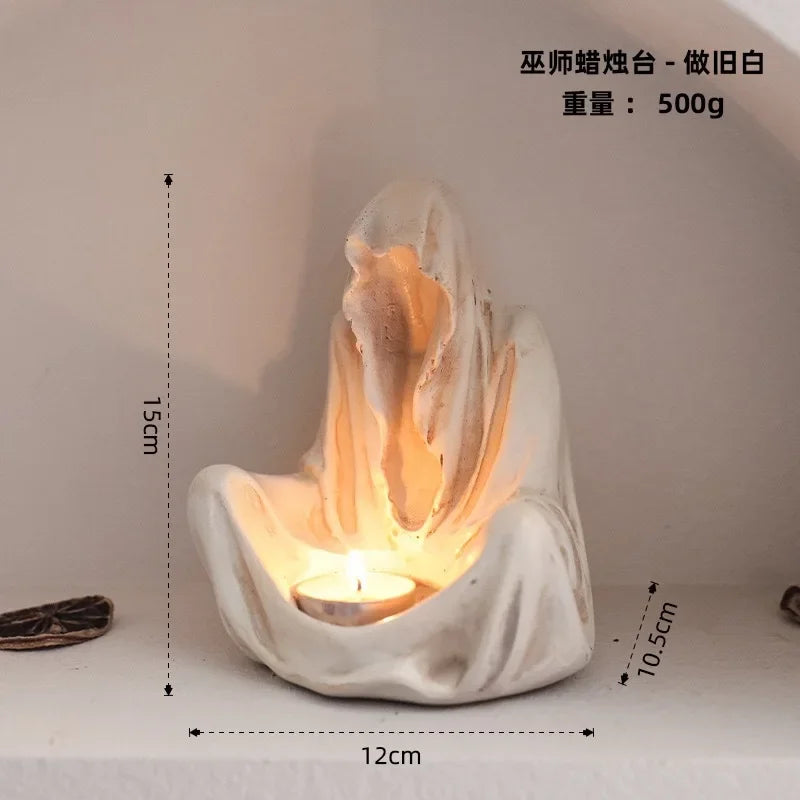 Desk Decoration Statue Ghost Figurine Candles Holders Witch Resin Sculpture Crafts Home Decor Halloween Scary Garden Ornament