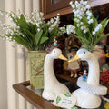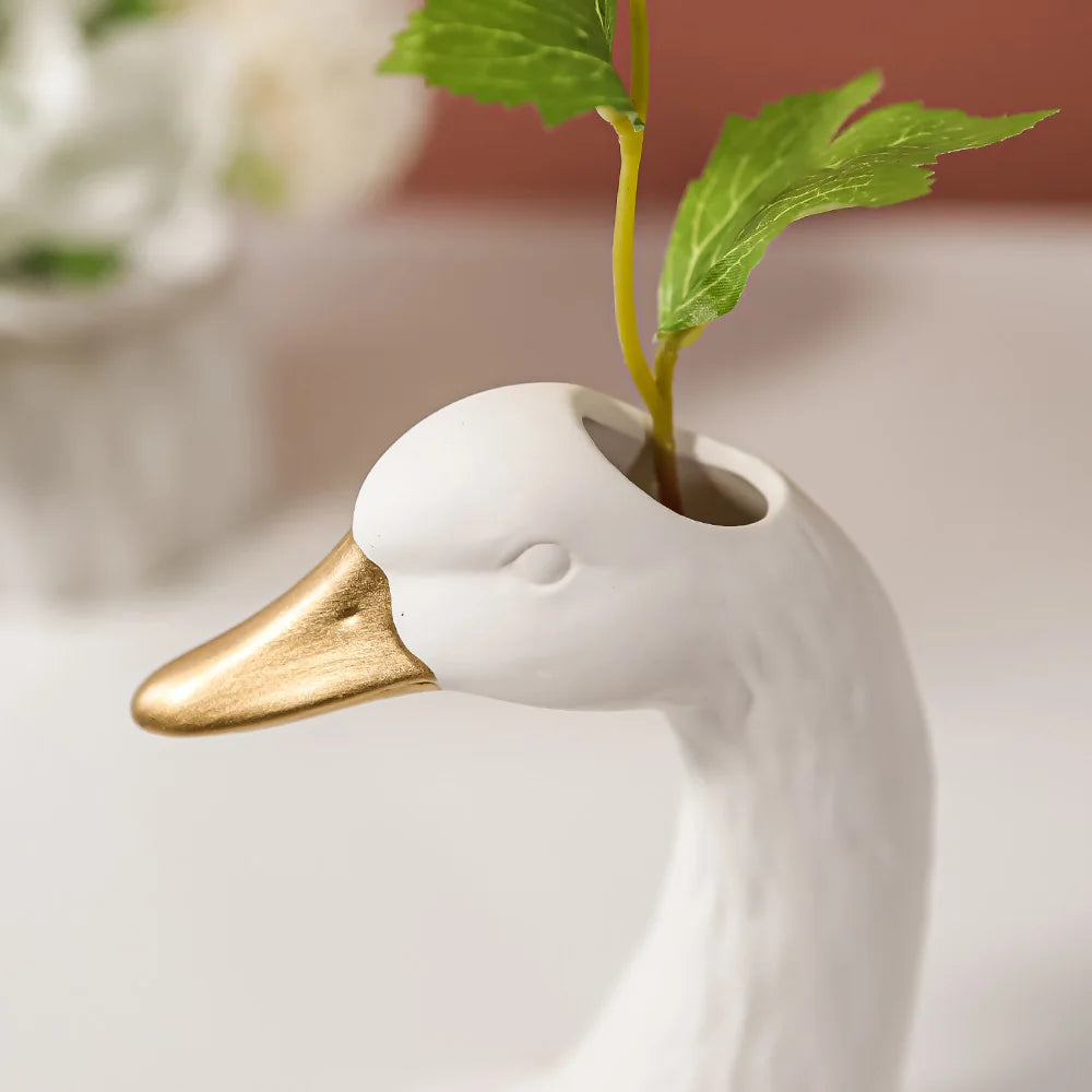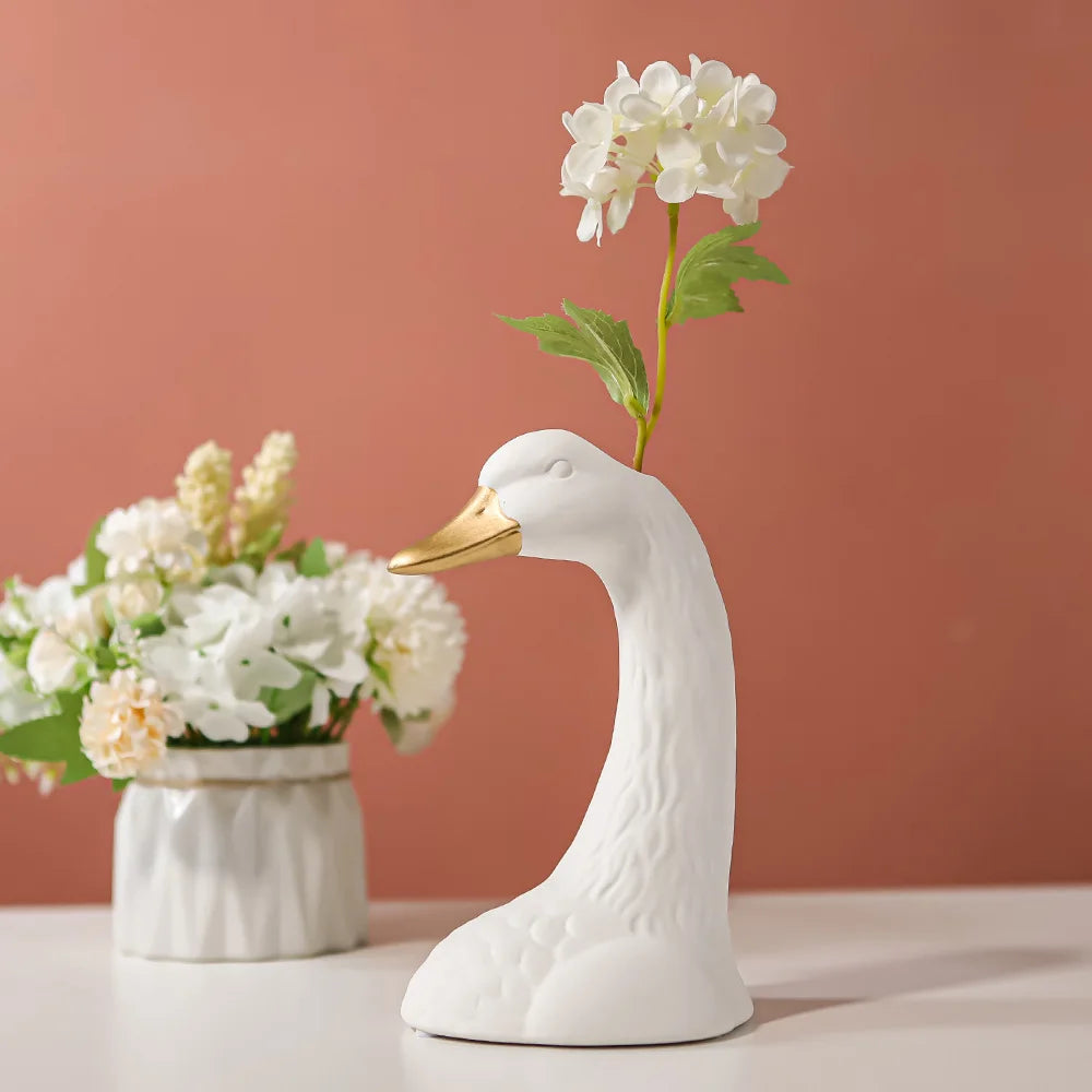 DIY Plain White Swan Ceramic Vase Creative Pink Hand-painted Big Goose Desktop Vase Simple Animal Home Decorations Garden Decor