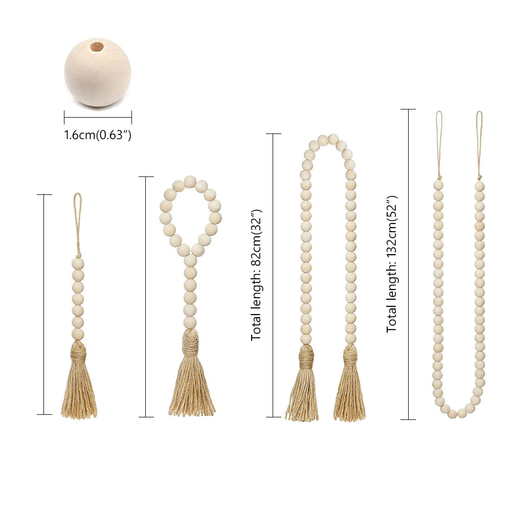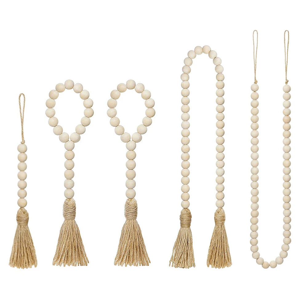 DIY Wooden Home Decoration Handmade Garland With Jute Rustic Tassel Wood Bead Garlands For Rattan Macrame Wall Hanging Boho Gift