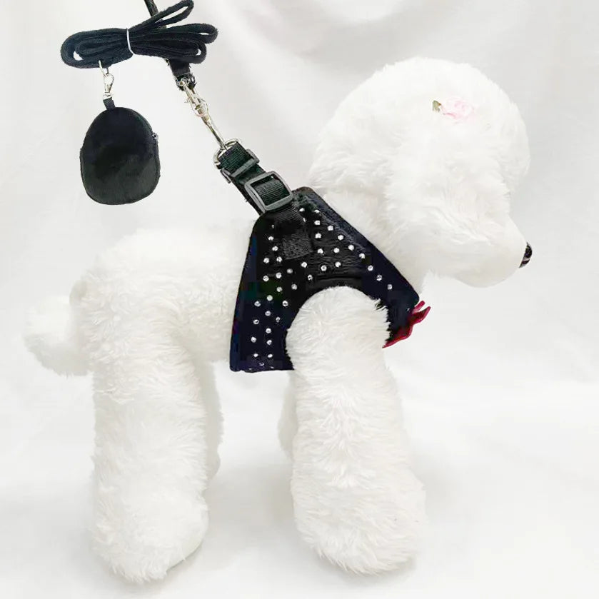 Dog Harness Leash Set Dog Chest Harness Vest WIth Bowtie Small Diamond Decoration Soft Harness Vest For Small Medium Dogs