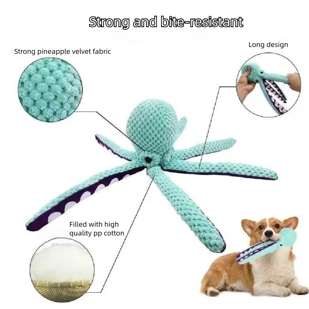 Dog Interactive Octopus Chew Toy, Squeaky Dog Toy, Suitable for Hide and Seek and Puppy Teething, Perfect for Puppies