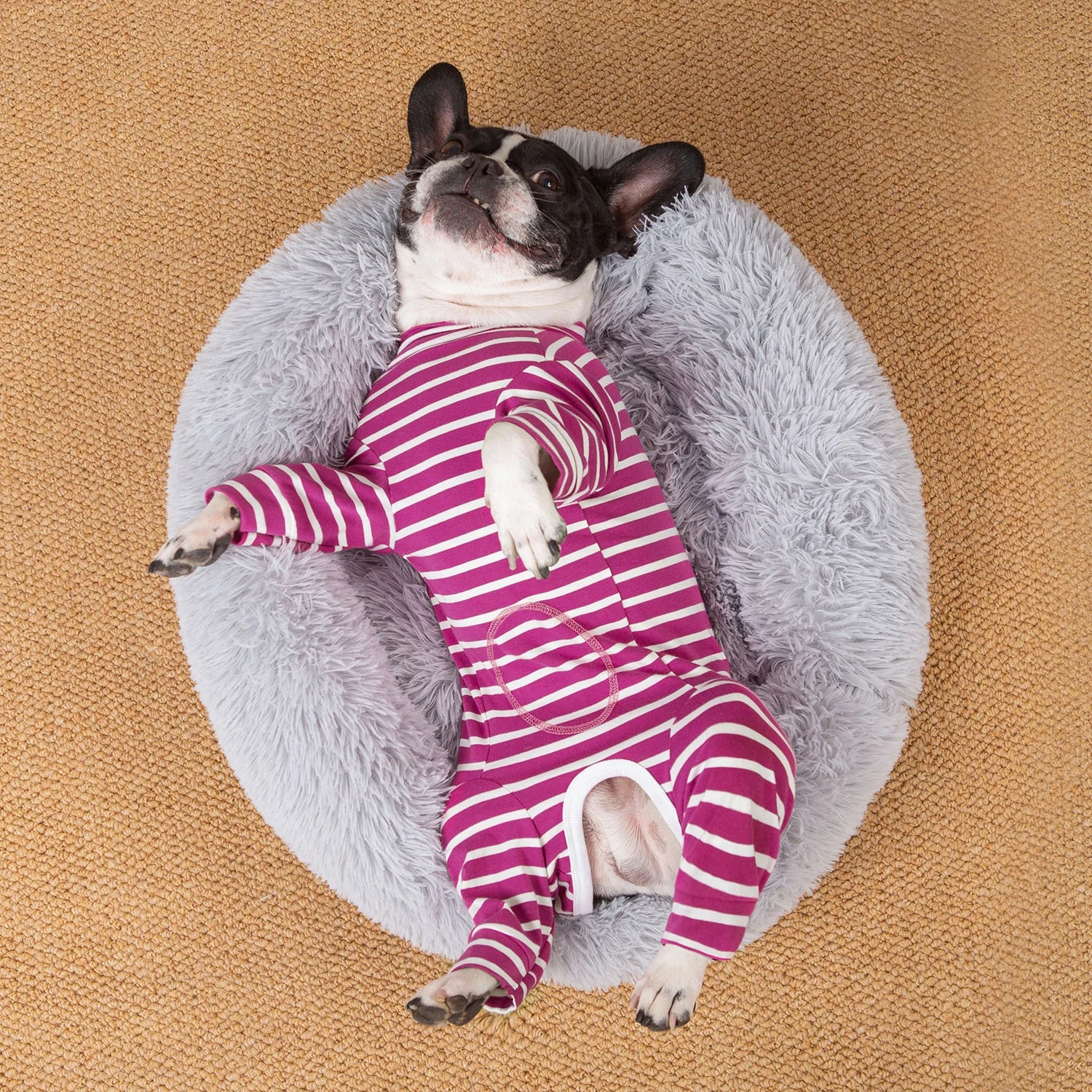 Dog Pajamas for Small Dogs Striped Soft Breathable Pet Recovery Suit Cuttable Belly Full Body Suit for Boy Girl Dogs All Seasons