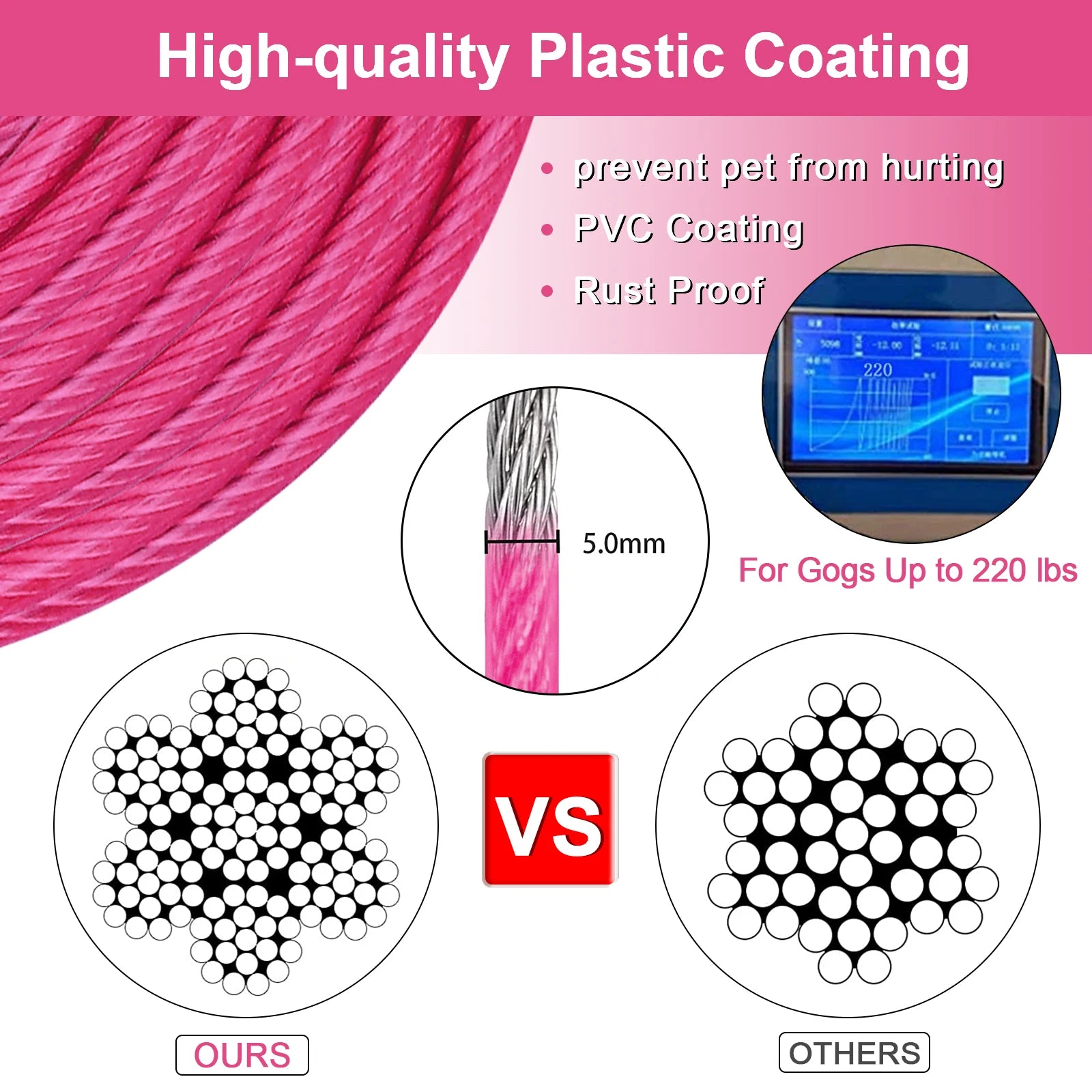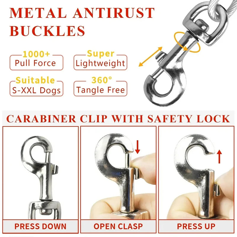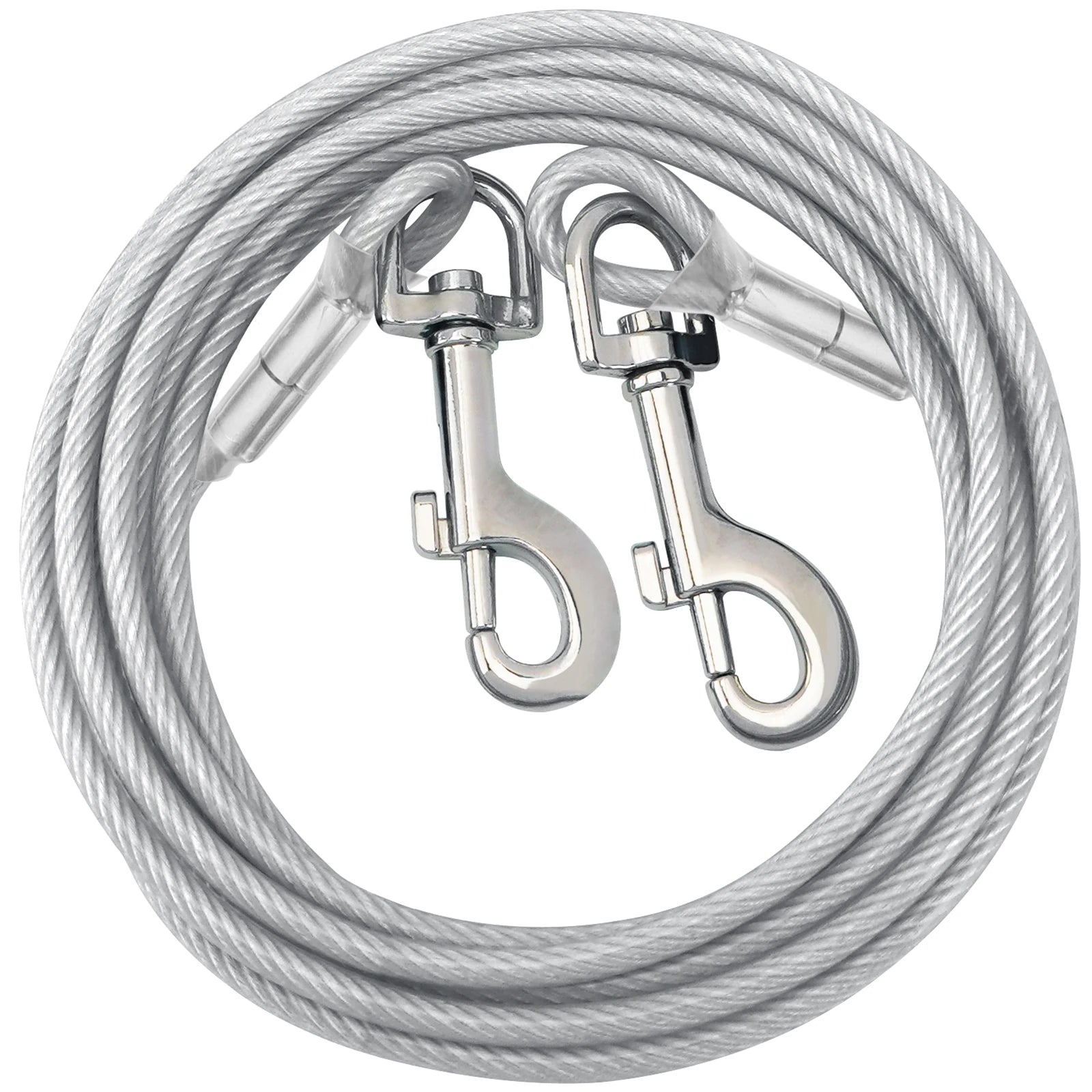Dog Tie Out Cable Leash, Double Durable Steel, Welded Clamp, Lead, Small, Medium, Large Dogs, Outdoor Leash Belt