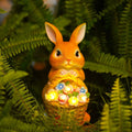 Easter Bunny Figure with Solar Powered Flower Light Garden Decor Rabbit Sculpture Cute Bunny Ornament for Patio Yard Lawn