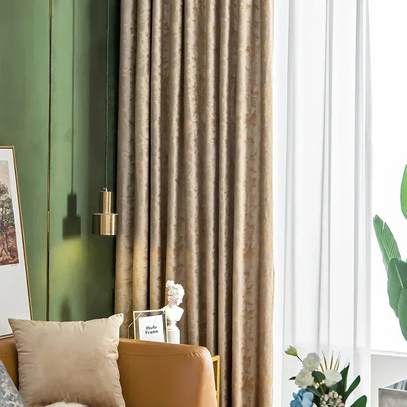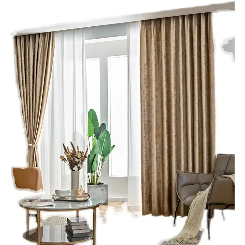 European American Luxury Gilded Coffee Velvet Curtains for Living Room Bedroom Thick Textured High-end Blackout Window Custom