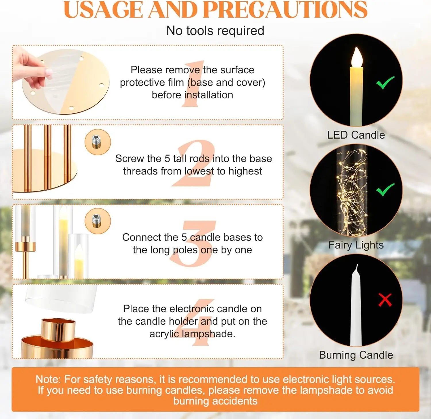 Floor Candelabra 5 Arm 42.5'' Tall Gold Candle Holder, Candelabra Centerpieces for Tables, Metal Candlestick Set with Acry