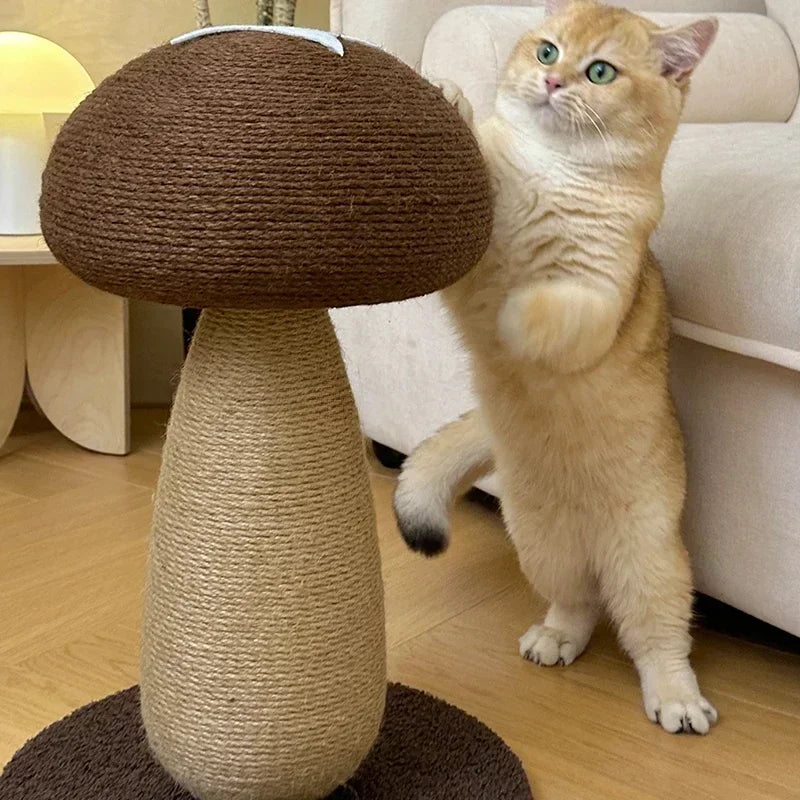 Floor Standing Cat Scratch Post Interactive Scratcher Durable Cat Toy Wear-Resistant Shiitake Mushroom Sisal Claw Grinding Toy