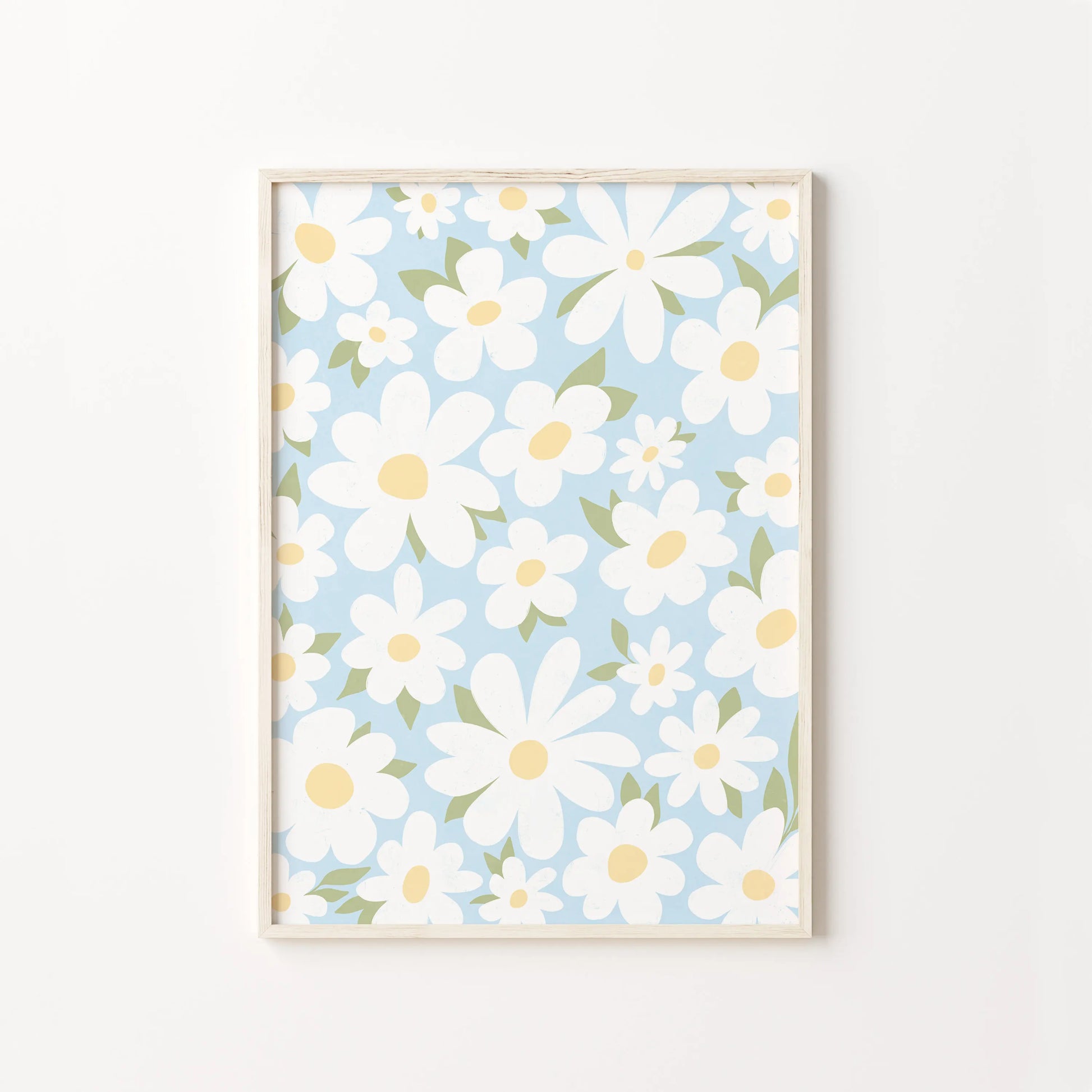 Flower Wall Art Canvas Print Natural Pastel Daisies Floral Illustration Poster Botanical Market Living Room Bedroom Decoration