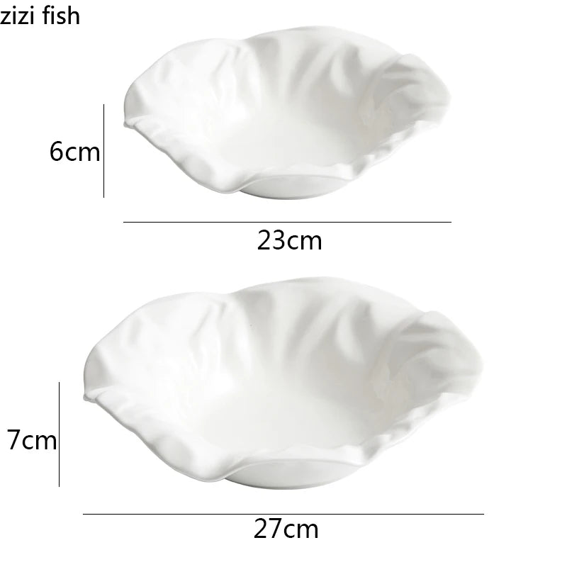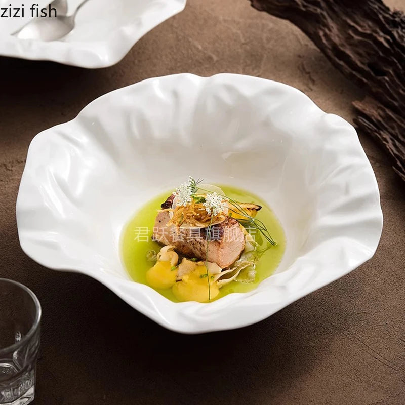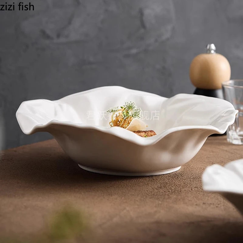 Fold Texture Ceramic Plate Salad Plate Pasta Dish Thick Soup Plate Dessert Plates Serving Plates Molecular Cuisine Tableware