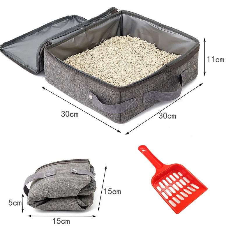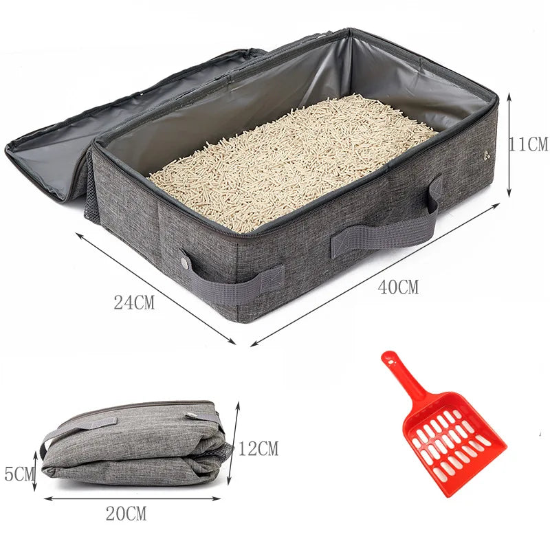Foldable Travel Litter Box for Cats - Waterproof Portable Potty Tray with Bag-Compatible Design, Leak-Proof Collapsible Toilet