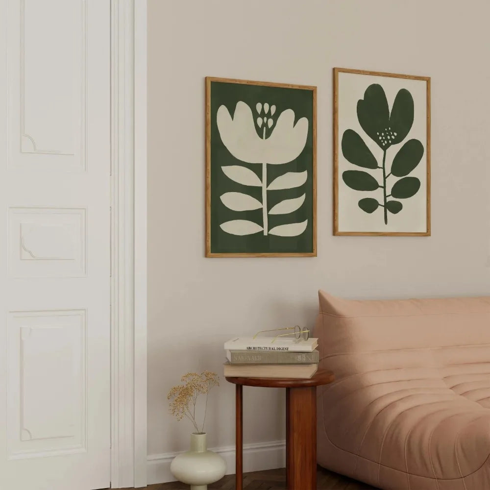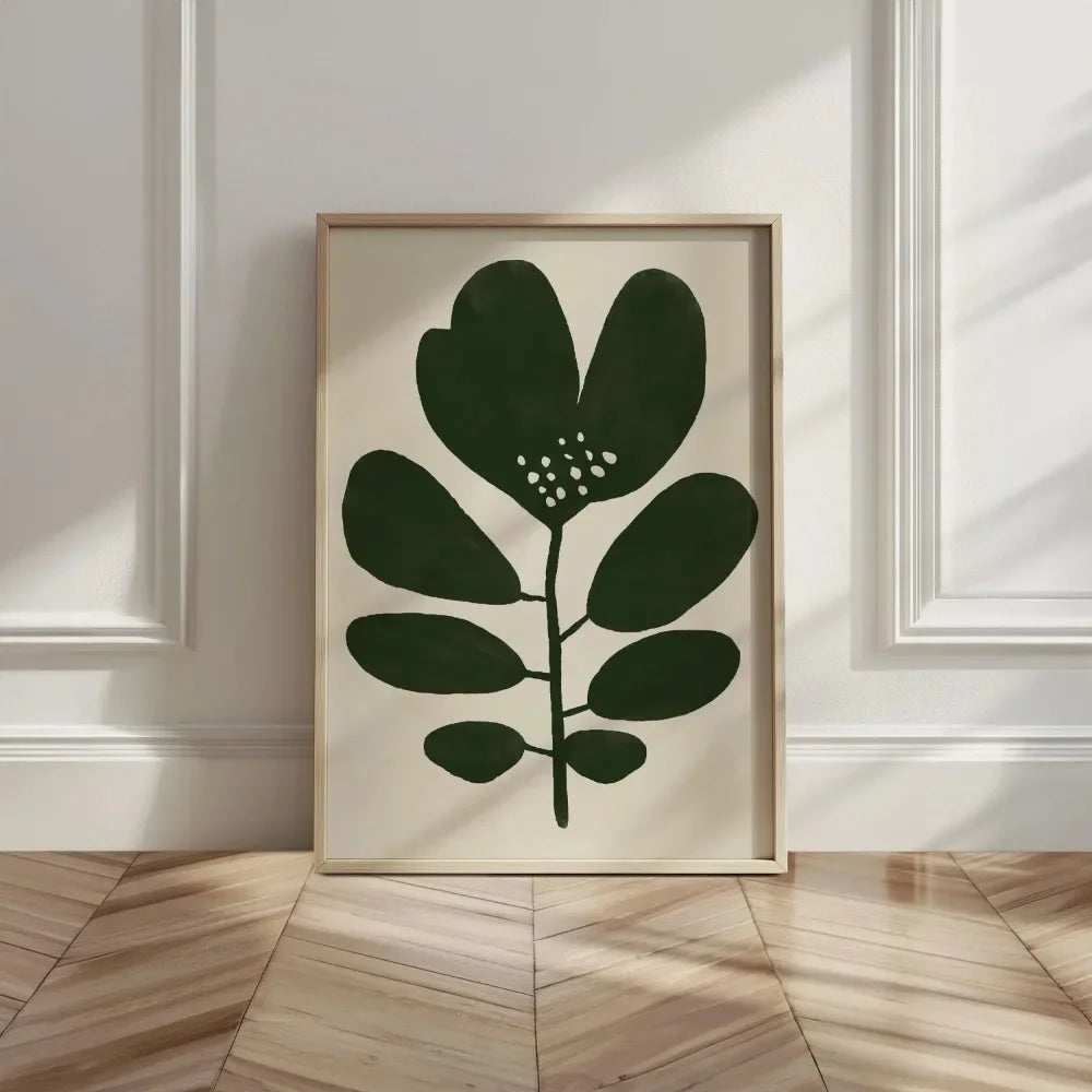 Frameless Modern Fashion Wall Decoration Art,Moss Green Canvas Printing Art Poster,Abstract Flower Painting Retro Flower Poster
