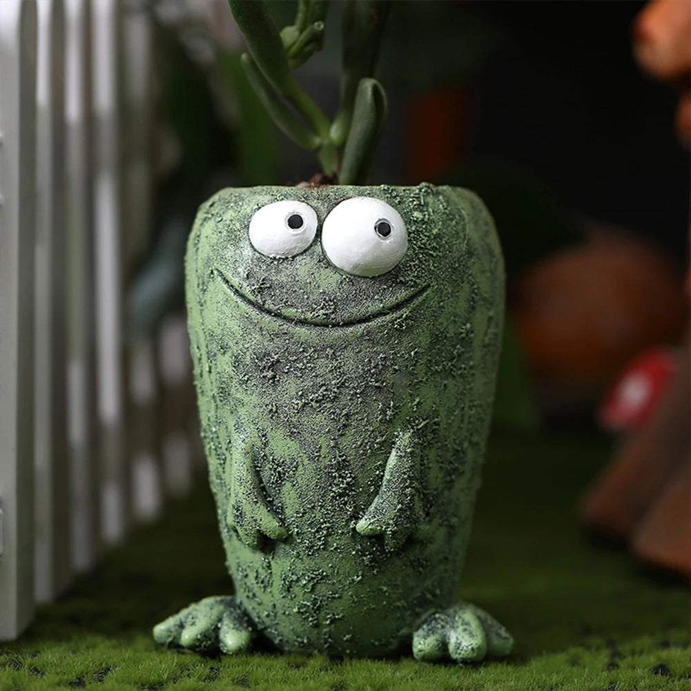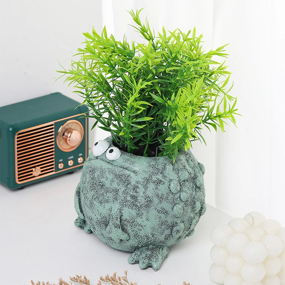 Funny Frog Planter Resin Cartoon Frog Flower Container Small Frog Planter Ornament for Home Decoration