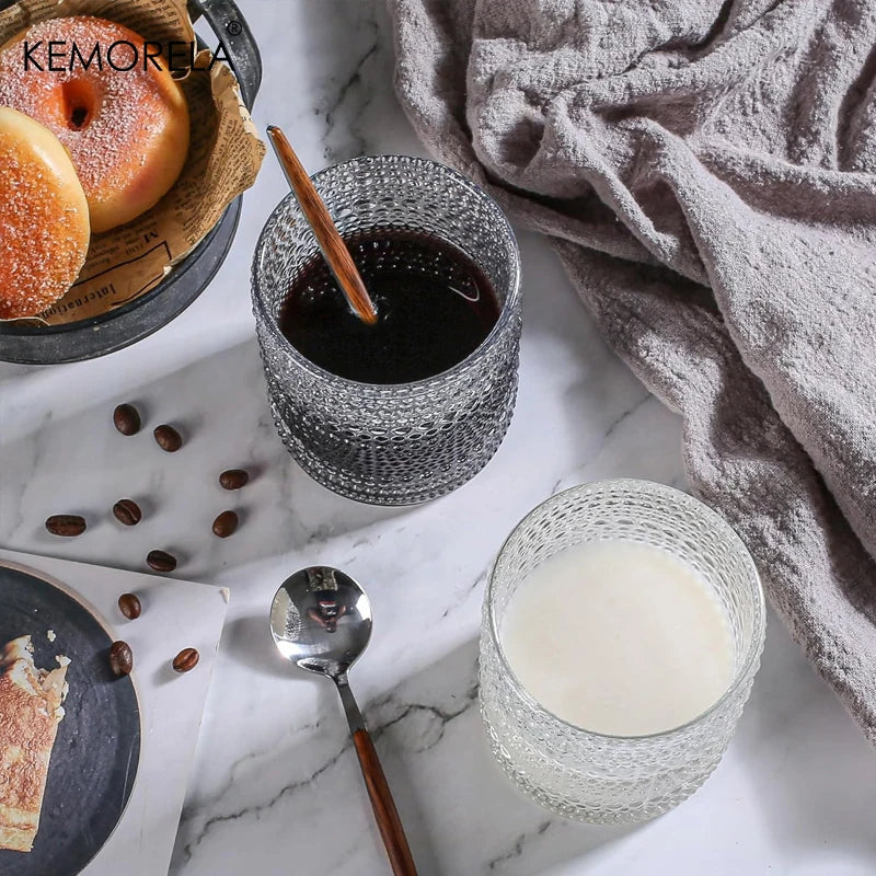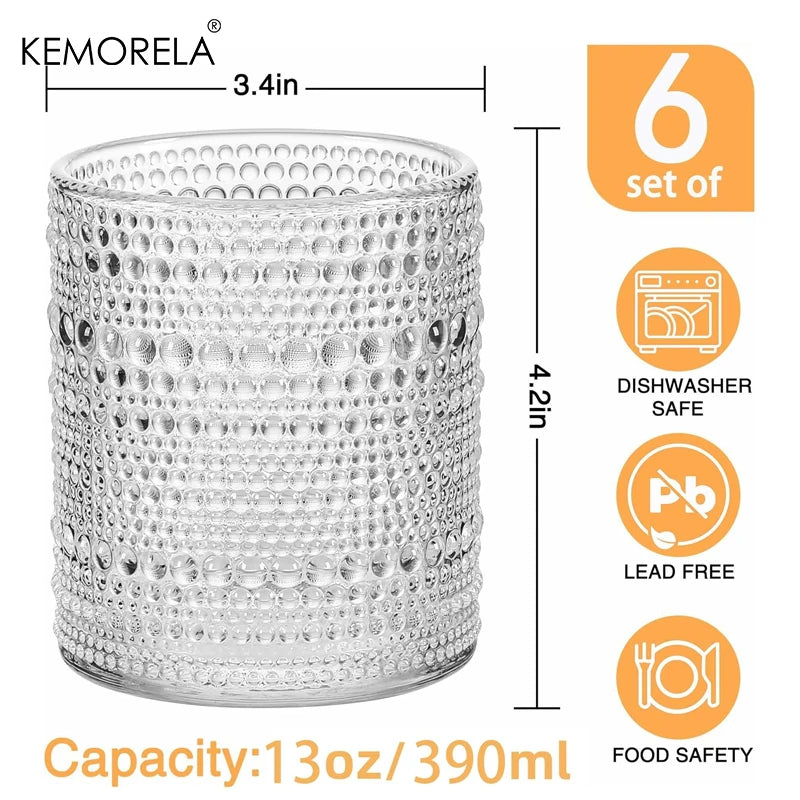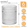 Glassware Set Of 6 13 OZ/390ml Kitchen Glassware Embossed Vintage Glass For Water Cocktail Soda Beverage Juice