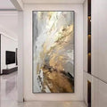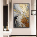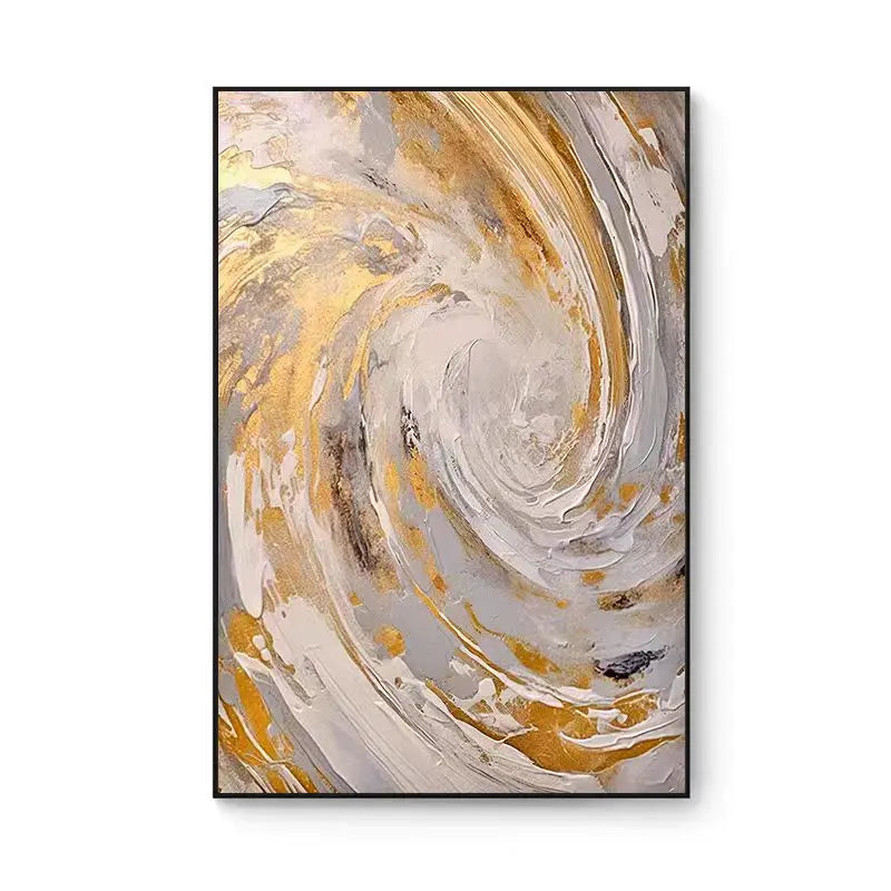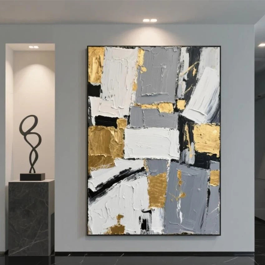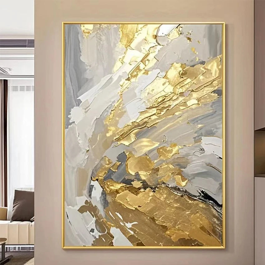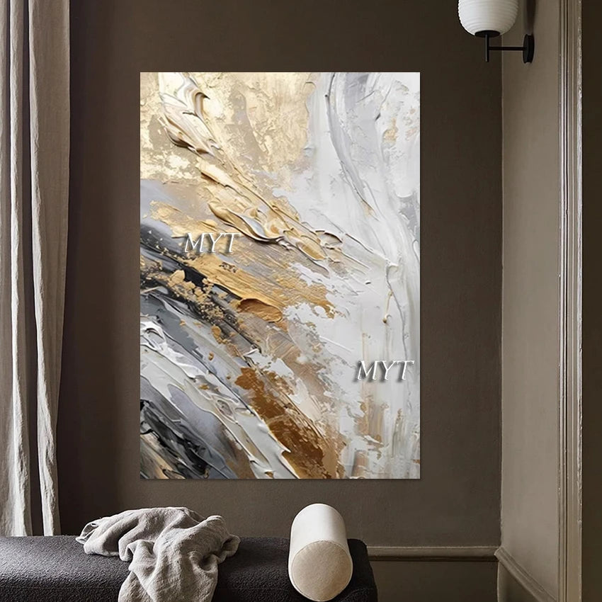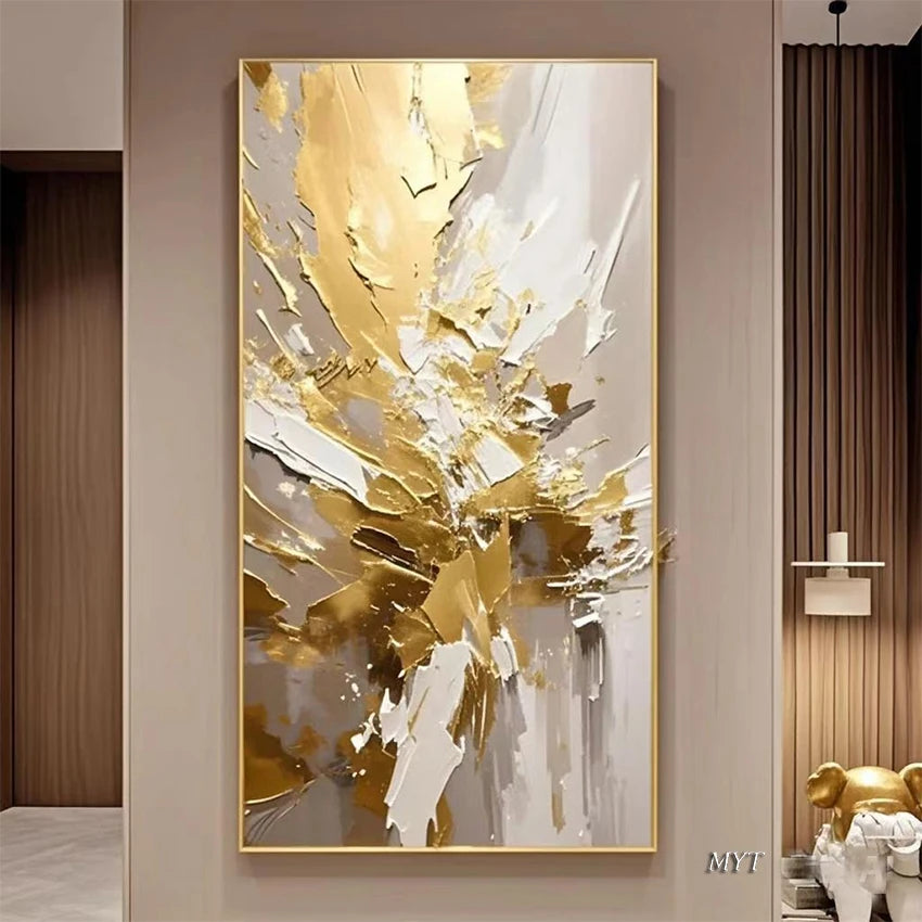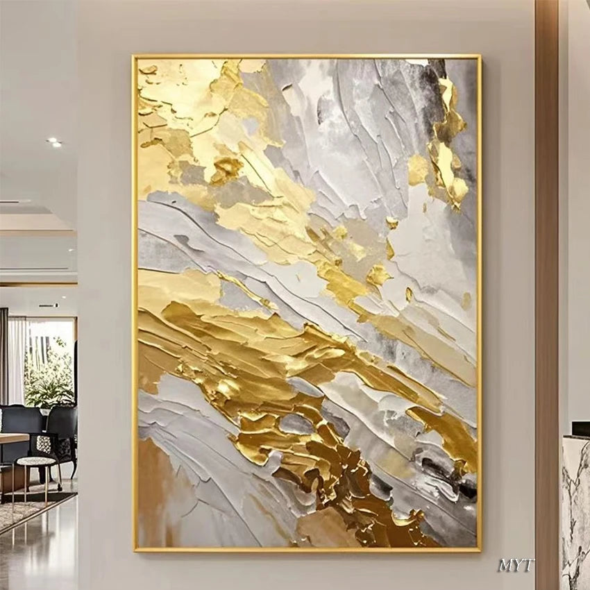 Gold Foil Textured Oil Paintings, Palette Knife Canvas Art, Abstract Design Artwork, Frameless, Wall Picture For Restaurant