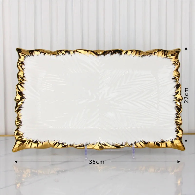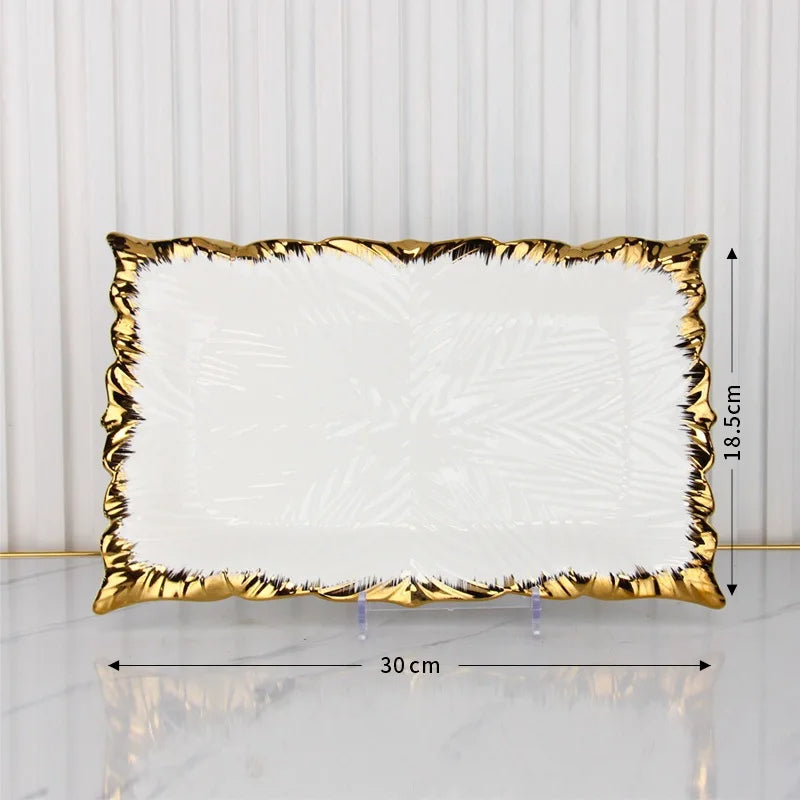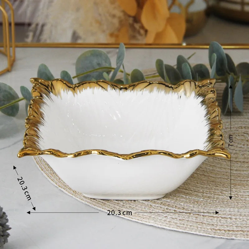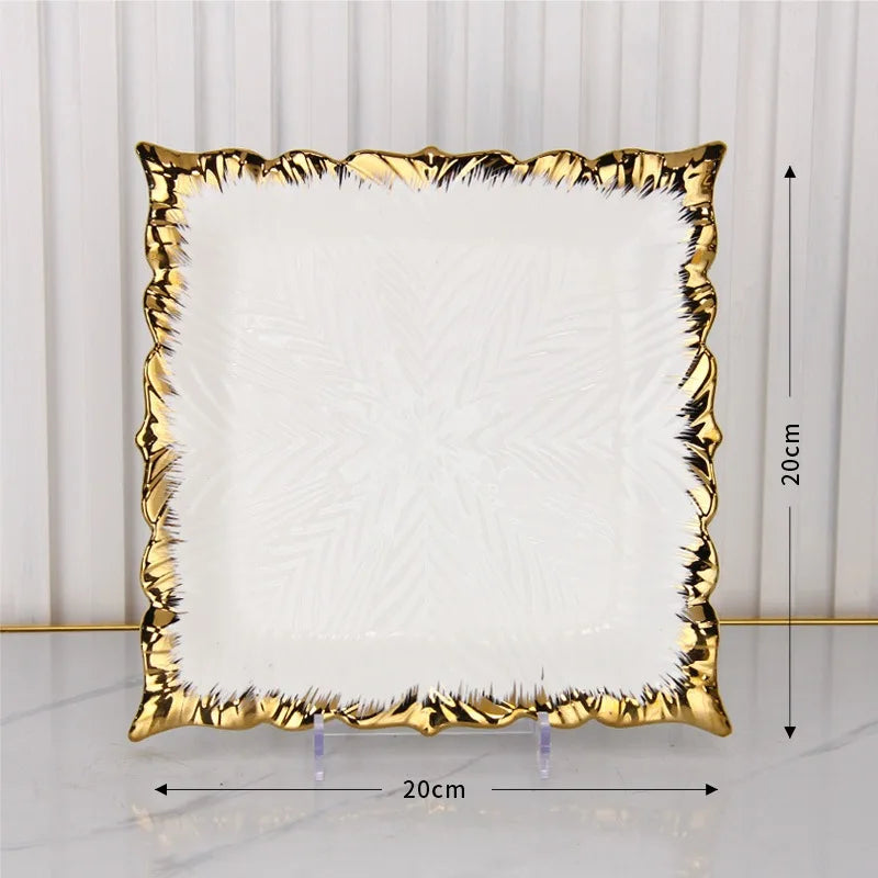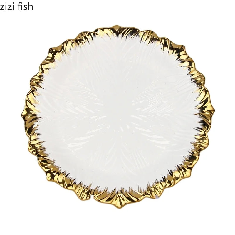 Golden Edged Ceramic Dining Plate Western Steak Plate Sushi Plates Dessert Bowl Sashimi Plates Fruit Dish Salad Bowl Soup Bowls
