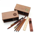Graduation Gift Wooden Pen Holder Chinese Style Hand Carved Desk Organizer Natural Wood Stationery Storage for Students/Teachers
