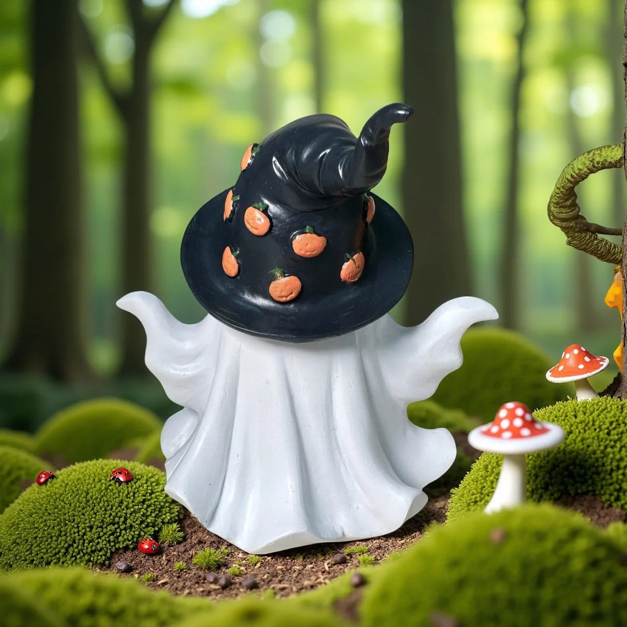 Halloween Confused and Cute Ghost Pumpkin Garden Home Party Resin Sculpture Ornament