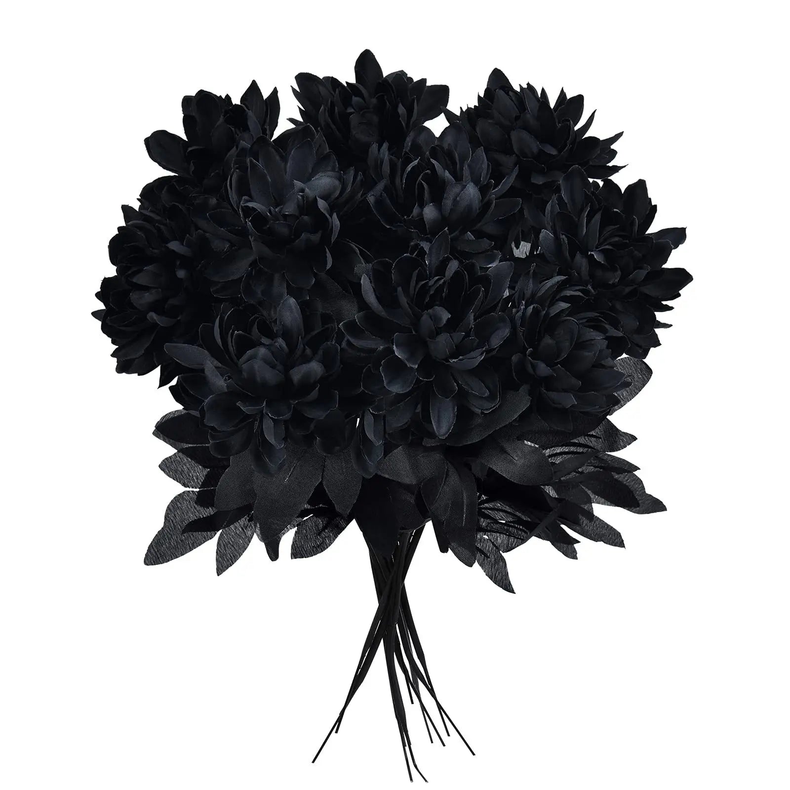 Halloween Decoration Burgundry Dahlia Black Artificial Flower Branch Arrangement Materials Fake Flower Table Home Party Decor