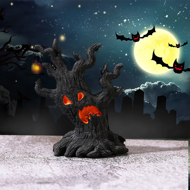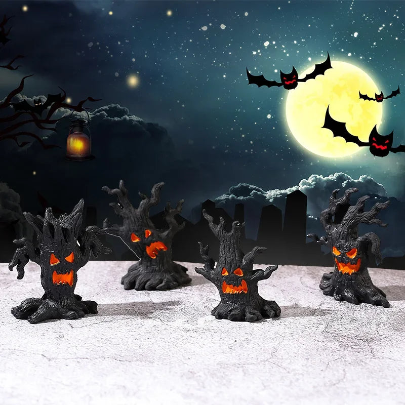 Halloween Pumpkin Lanterns LED Electronic Candles Ghost Tree Stump Decorations Funny Faces Festive Atmosphere Ornaments