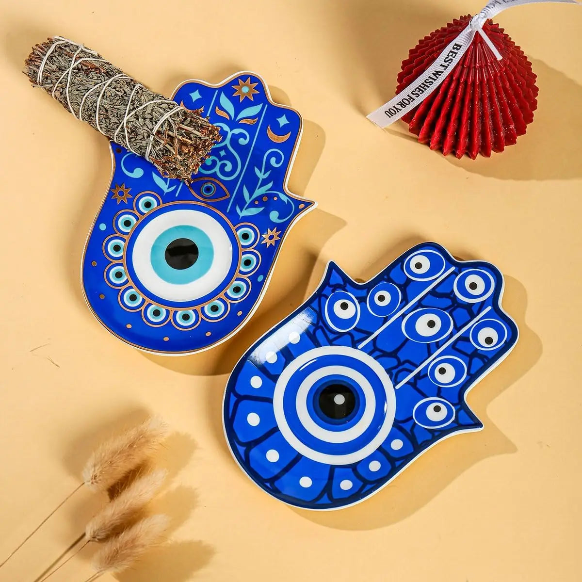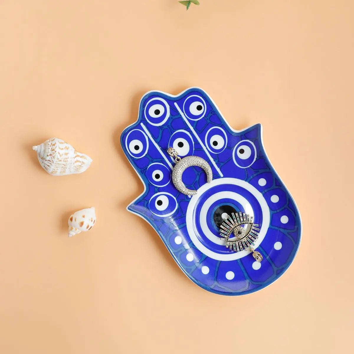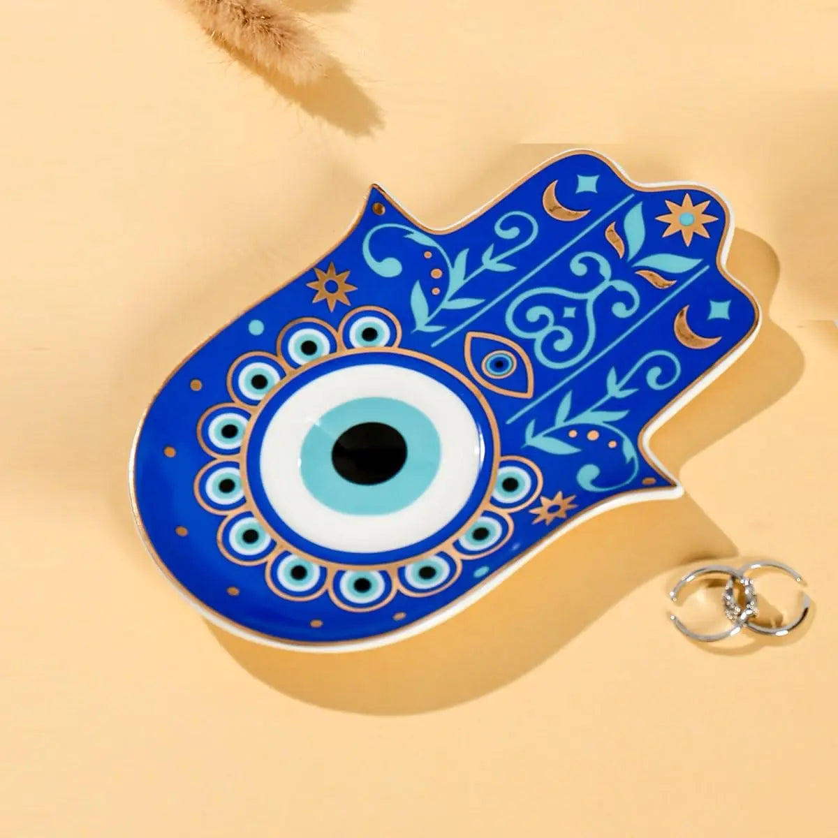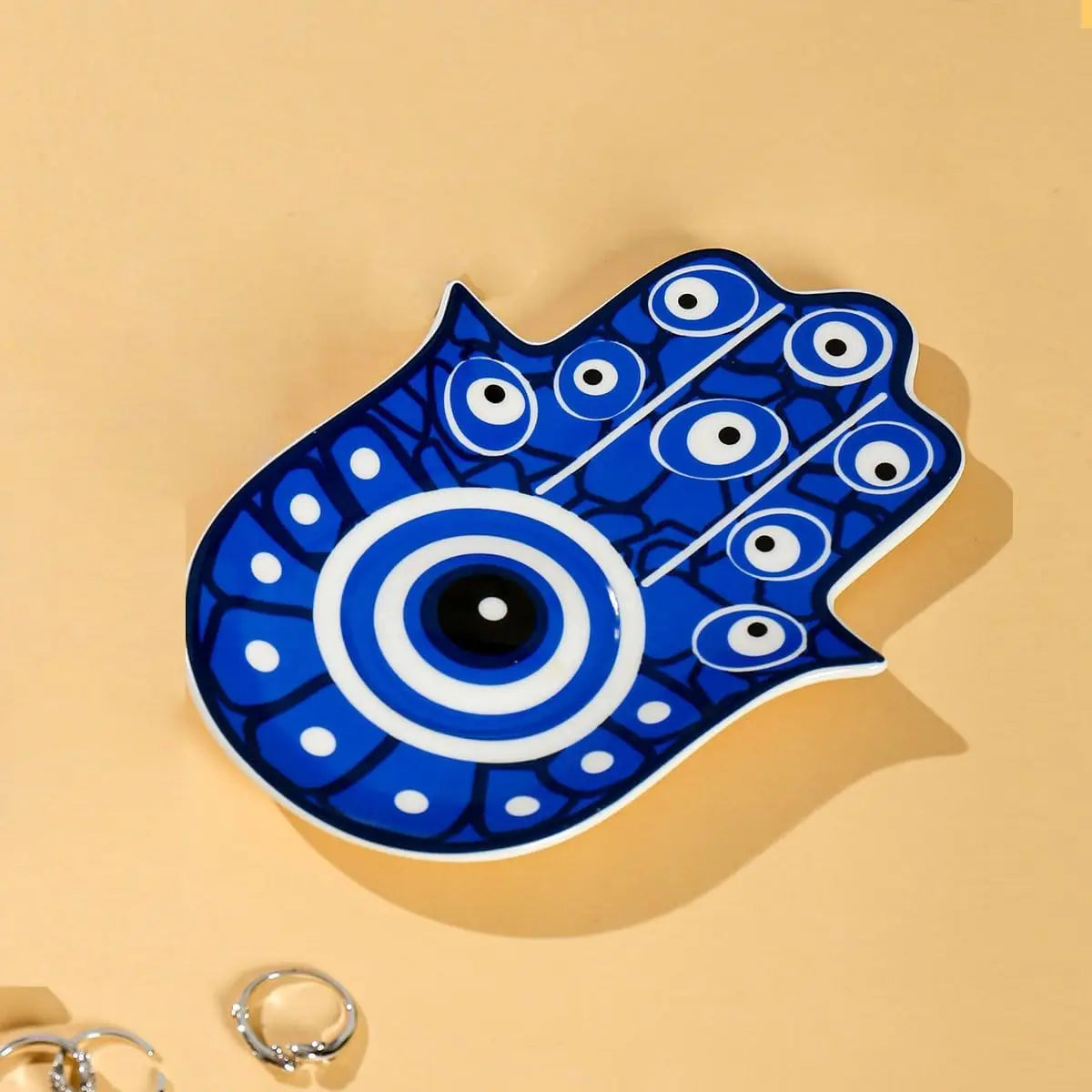 Hamsa Evil Eye Hand of Fatima Holder,Jewelry Tray, Ring Dish,Decorative White Ceramic Ring Tray for Jewelry, Key Bowl, Friends S