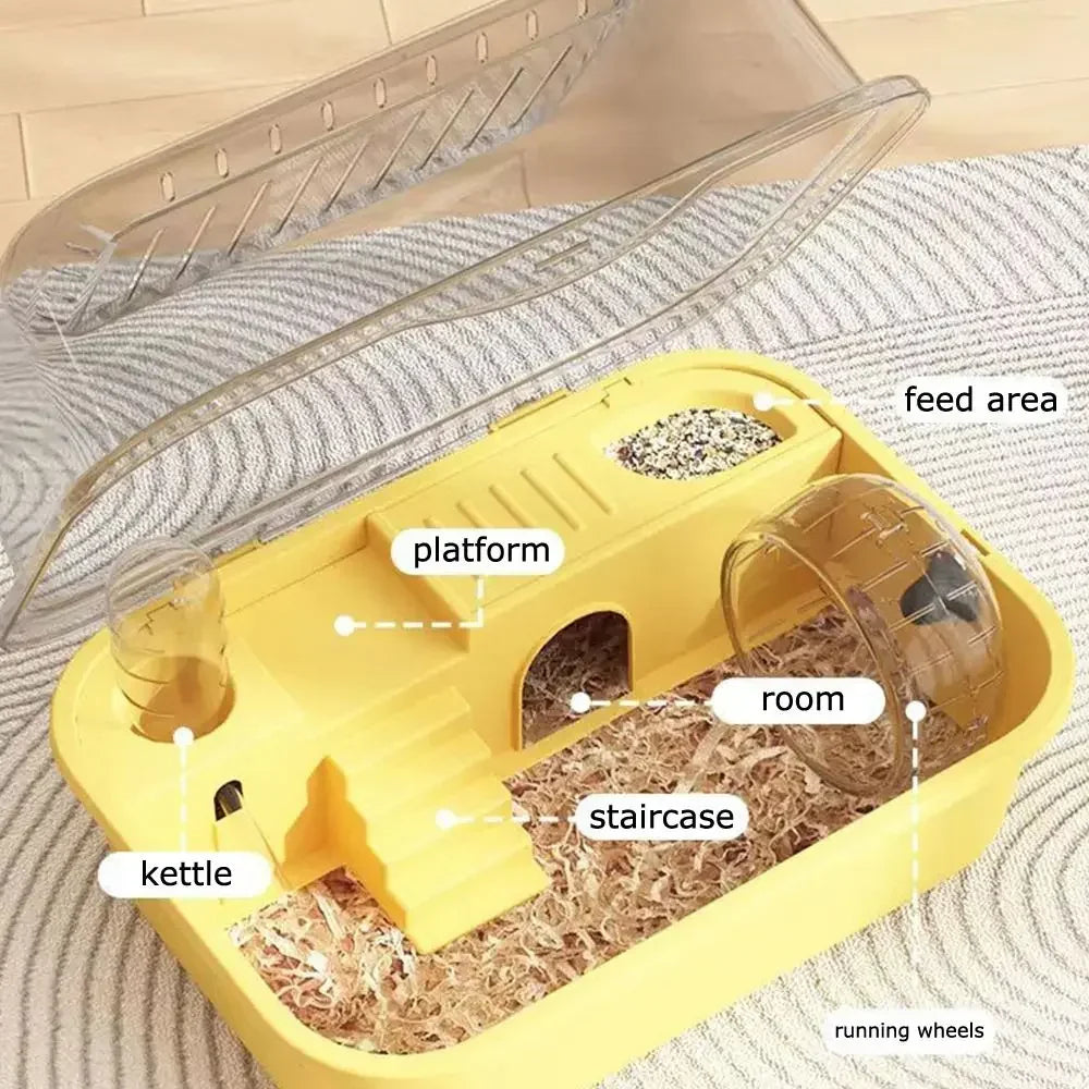 Hamster Cage Mouse Rat Rodent Habitat with Exercise Wheel Tubes Hut Transparent Small Animal Habitat House Pet Home