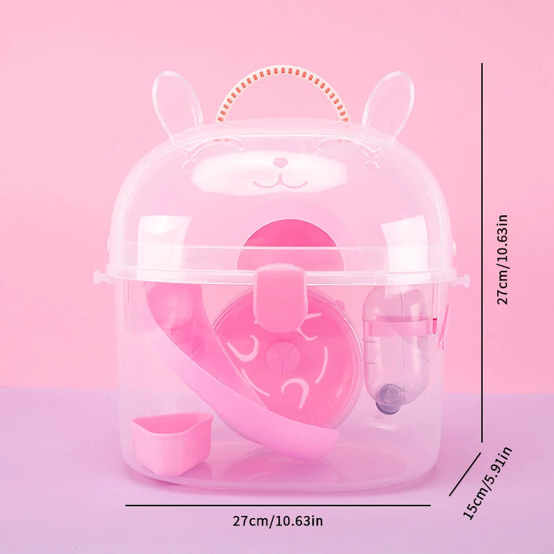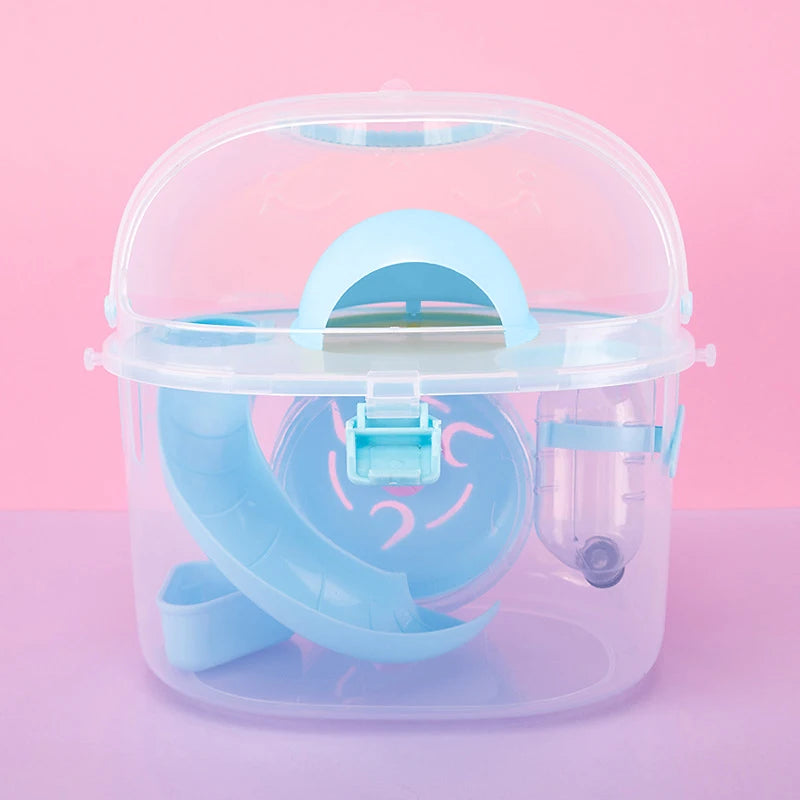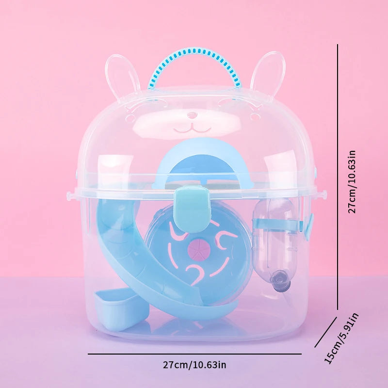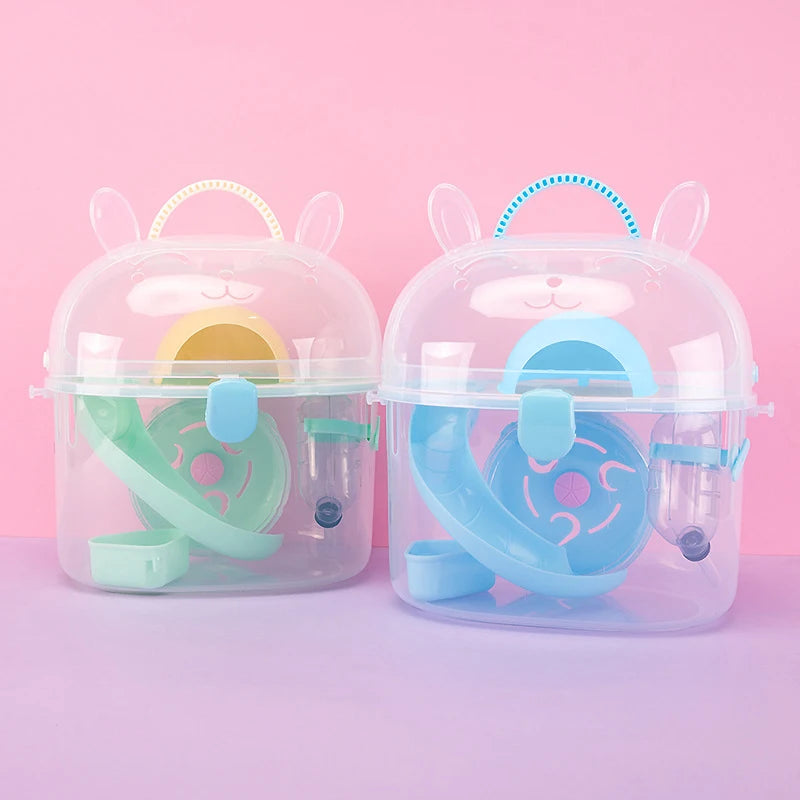 Hamster out of the cage, sturdy, bite resistant, convenient cage, transparent hand-held cage with water bottle and running wheel