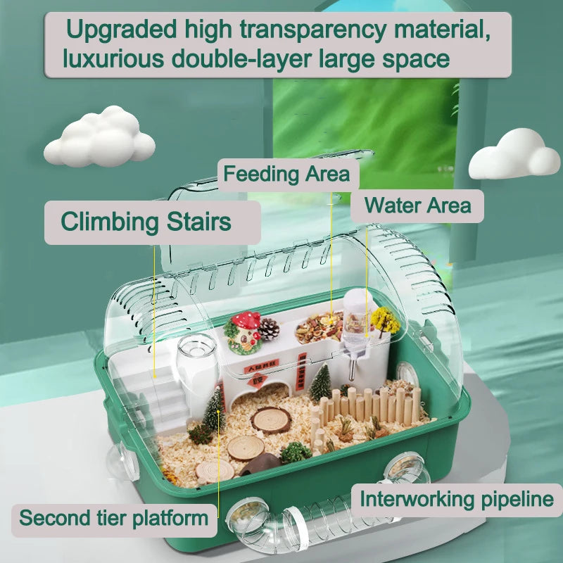 Hamster pet cage luxury villa oversized acrylic tunnel gold wire house supplies single and double layers