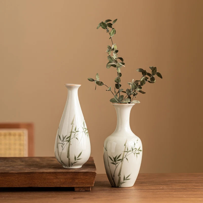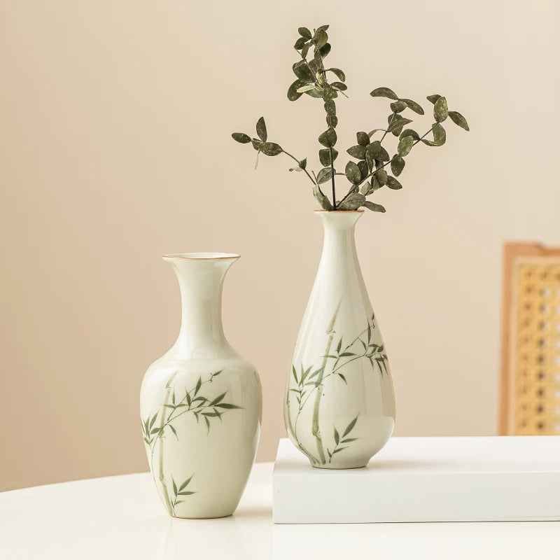 Hand Drawn Emerald Green Bamboo Flower Vase Decoration Creative Decoration for Living Room Flower Arrangement