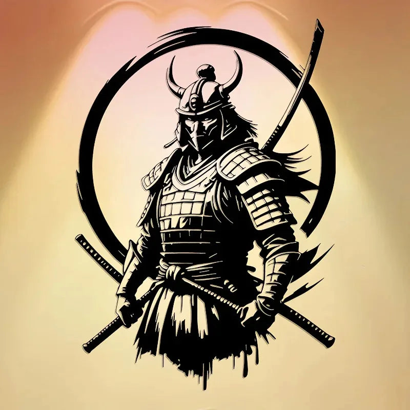 Hand-Forged Samurai Sword Metal Wall Art – Japanese Zen Warrior Sculpture for Home/Office Decor – Dynamic Battle Scene Artwork