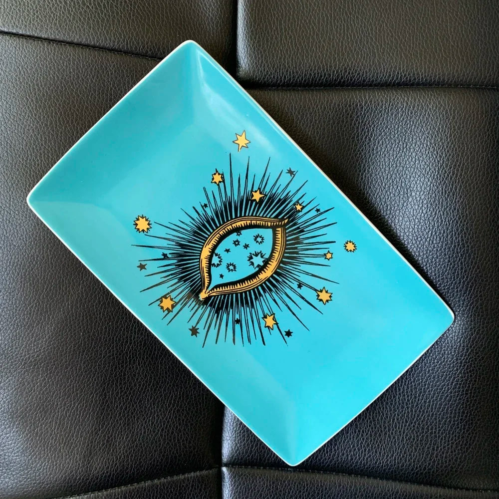 Handmade Ceramic Starry Sky Big Eye Rectangle Plate Jewelry Makeup Storage Tray Candy Dish Creative Ashtray Home Decoration