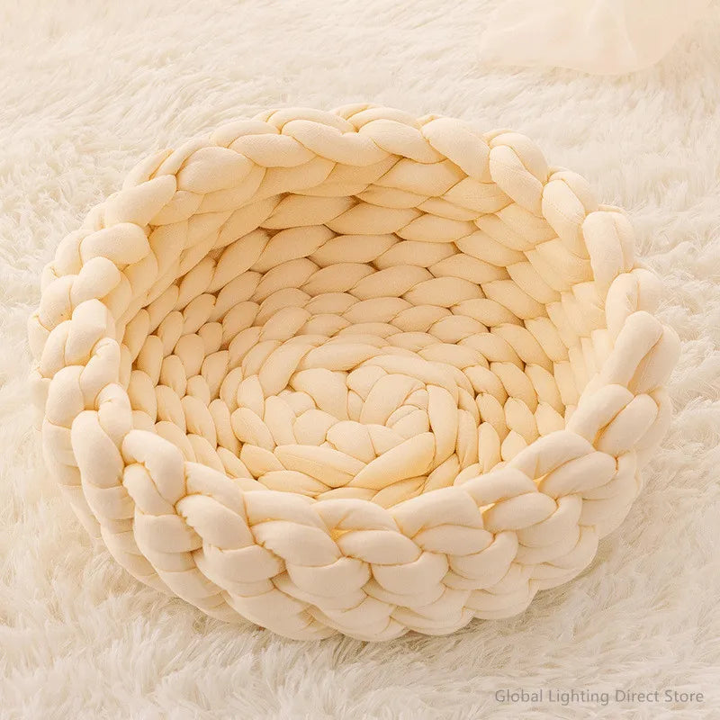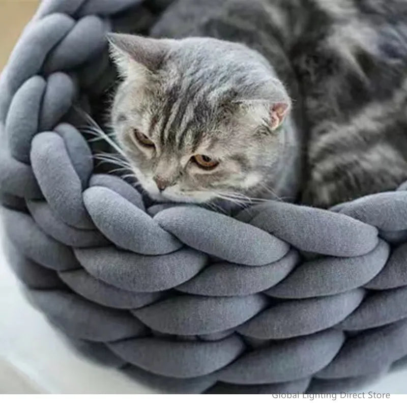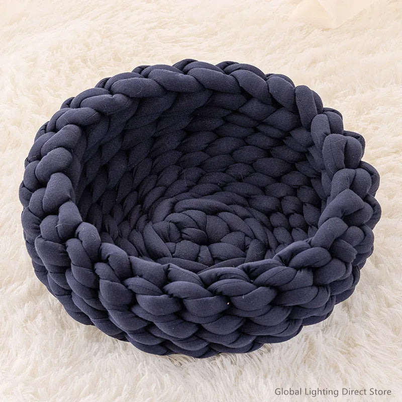 Handmade Knit Warm Soft Dog Cat Bed Mats Pet Kennel Detachable Small Dogs Cats Cave Basket Puppy Sleeping Bags Cozy Pets House 2