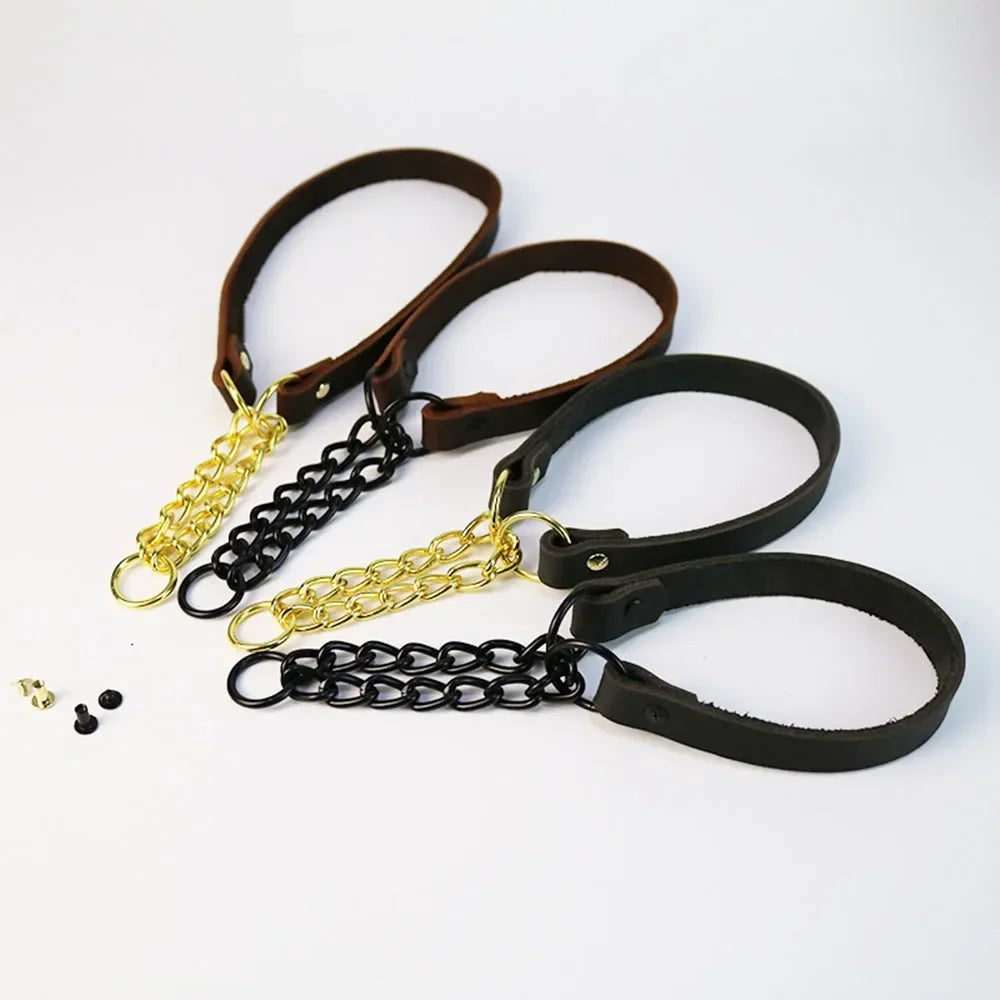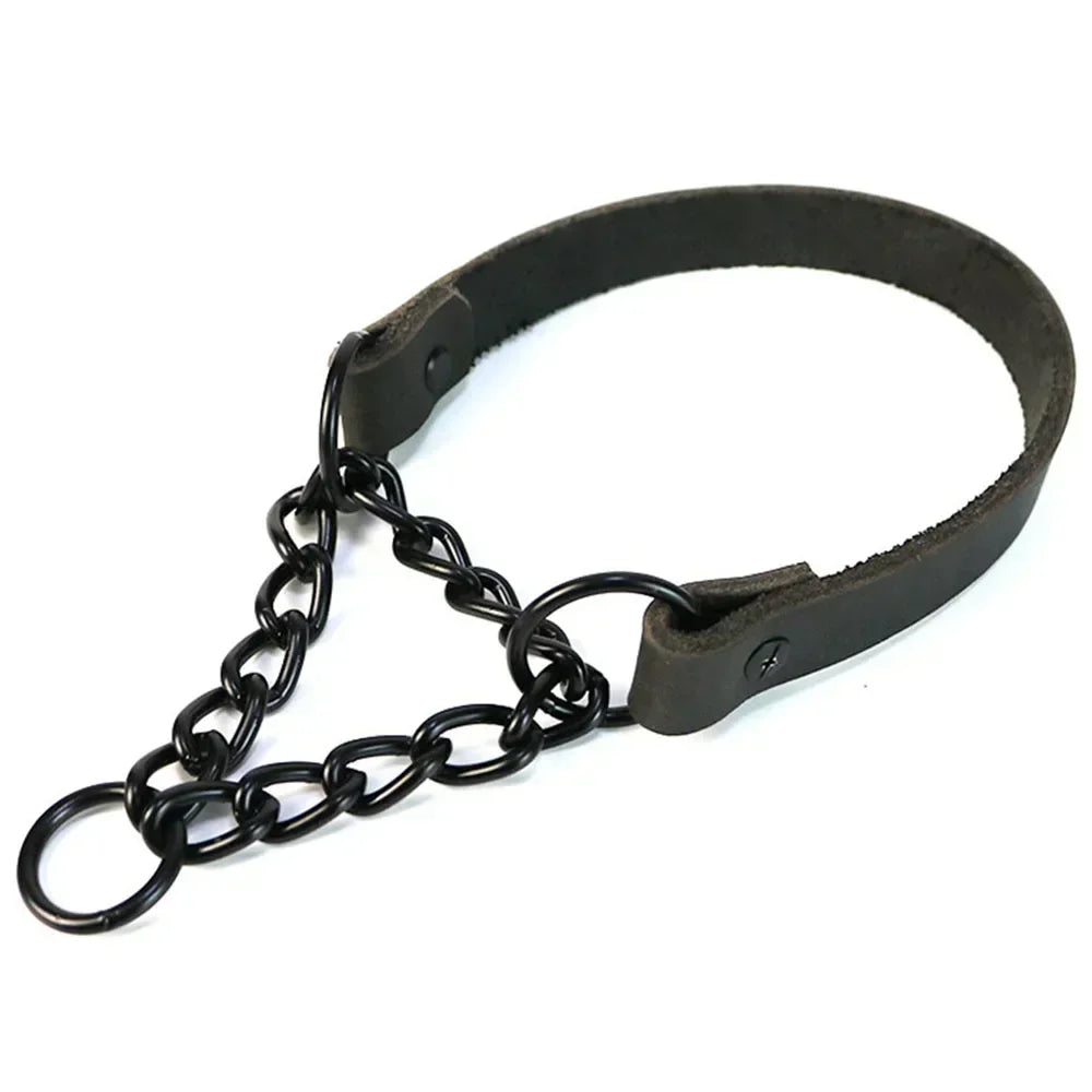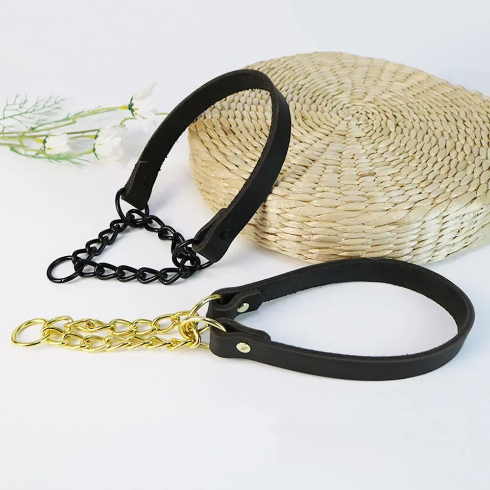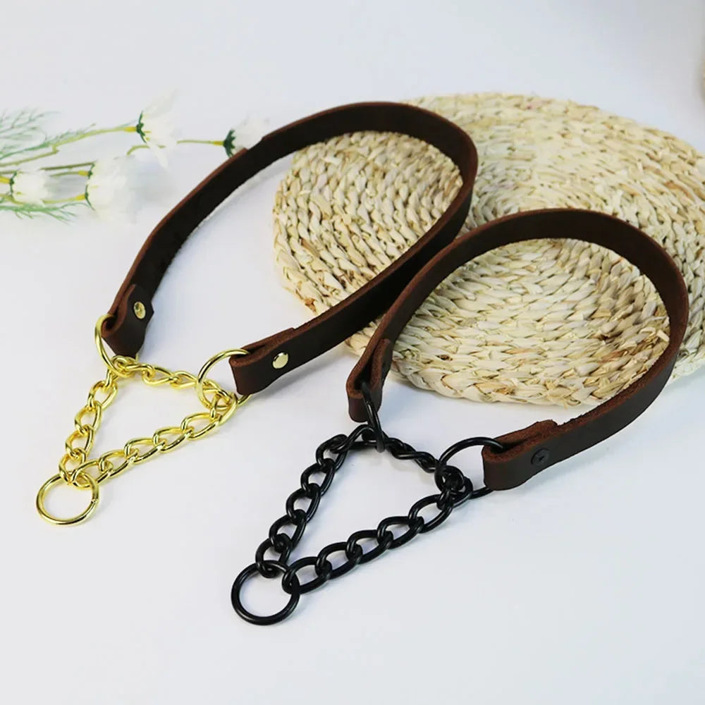 Heavy Duty Genuine Leather Dog Collar with Martingale Metal Chain No Pull Dog Training Collar Leather Martingale Collar for Dogs